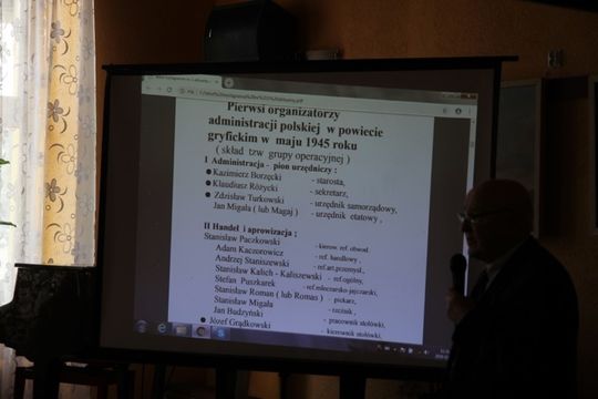 Okolicznościowy wykład pt. Oni byli pierwsi – poczet pionierów polskich Gryfic wygłosił dr Antoni Cieśliński w którym zaprezentował postaci ludzi którzy jako pierwsi organizowali powojenne życie w naszym mieście i gminie. Wśród zaprezentowanych postaci znalazł się Mieczysław Tacher – pierwszy – jeszcze z „nadania” komendanta wojennego – burmistrz Gryfic, Kazimierz Borzęcki pierwszy gryficki starosta i wielu innych osób organizatorów polskiej administracji, oświaty,rzemiosła i życia religijnego z pierwszym proboszczem ks. Feliksem Kwilasem czy pierwszym komendantem milicji obywatelskiej Wojciechem Kubickim.