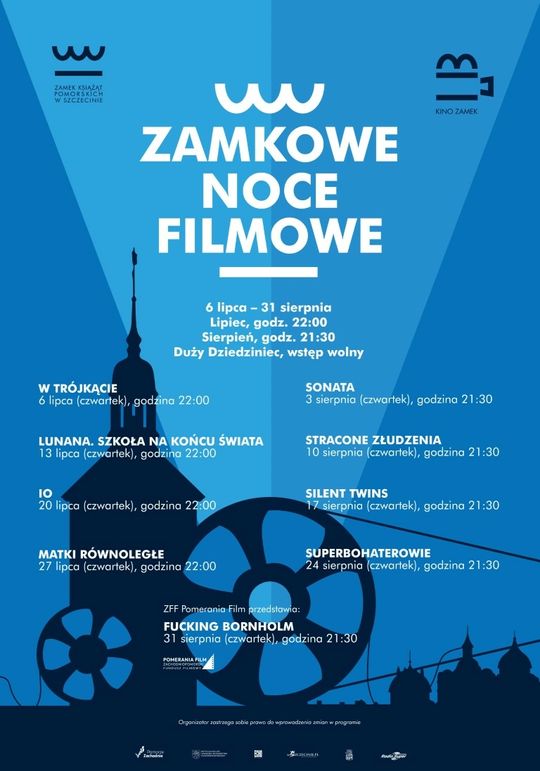 W każdy czwartek sierpnia Kino Zamek i Zamek Książąt Pomorskich w Szczecinie zapraszają na Zamkowe Noce Filmowe. Tegoroczna edycja wydarzenia odbywa się na Dużym Dziedzińcu. Sierpniowe pokazy rozpocznie zdobywca Nagrody Publiczności na Festiwalu Polskich Filmów Fabularnych w Gdyni - „Sonata” w reż. Bartosza Blaschke z udziałem Małgorzaty Foremniak, Łukasza Simlata i wyróżnionego w kategorii najlepszy aktorski debiut Michała Sikorskiego. W programie również takie produkcje jak „Stracone złudzenia”, „Silent Twins” Agnieszki Smoczyńskiej czy „Superbohaterowie”. Na zakończenie Zachodniopomorski Fundusz Filmowy Pomerania Film zaprasza na głośny „Fucking Bornholm”. Sierpniowe pokazy startują o godz. 21:30. Wszystkie seanse są bezpłatne. Zamek zastrzega sobie prawo do zmian w programie!