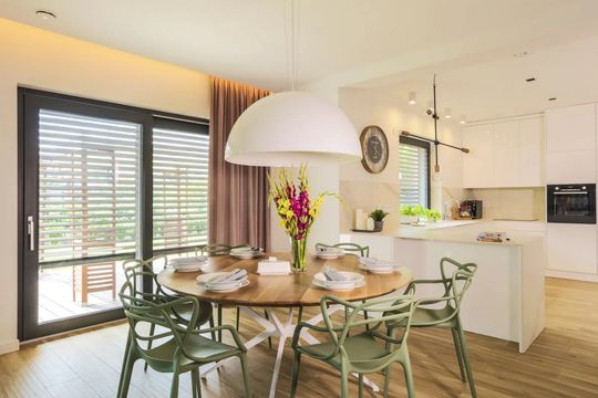 Aura zachodzącego słońca jest jednym z najprzyjemniejszych efektów, który otula wszystkie nasze zmysły. Golden hour (złota godzina) to czas, kiedy światło słoneczne przybiera wyjątkowo ciepły i miękki odcień. Efekt ten jest szczególnie lubiany przez fotografów a zapewnia go właśnie rozmieszczenie okien od zachodniej strony. To idealna lokalizacja dla tych pomieszczeń, w których chcemy cieszyć się pięknymi wieczorami, niezależnie od pory roku.