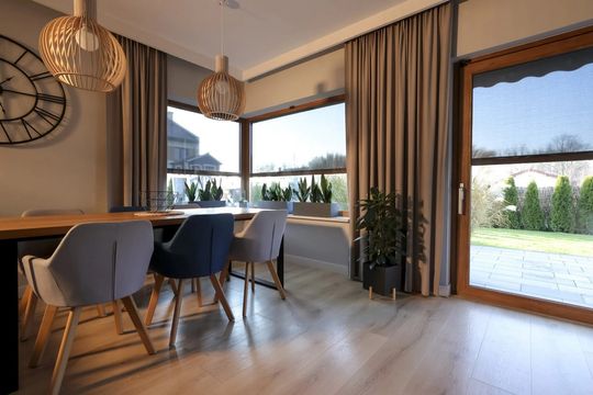 Mając okna usytuowane od wschodu musimy być gotowi na sporą ilość światła słonecznego w godzinach porannych i przyjemny cień w okolicach południa i po południu. Tego typu układ doskonale sprawdza się w kuchni, w której możemy rozkoszować się ciepłymi promieniami słońca pijąc poranną kawę czy przygotowując śniadanie dla najbliższych. Jednakże, potrzebujemy również możliwości zaciemnienia pomieszczeń, na przykład aby zapewnić sobie spokojny i niezakłócony sen w sypialni. Jednym z przykładów osłon jakie możemy zastosować w takim wnętrzu są żaluzje drewniane. Pozwalają na łatwą regulację ilości światła w zależności od pory dnia. Rankiem można je częściowo zasłonić, a w ciągu dnia podnieść, by wykorzystać naturalne światło. Dodatkowo, możemy je połączyć z zasłonami, tworząc przytulną i praktyczną aranżację wnętrza.