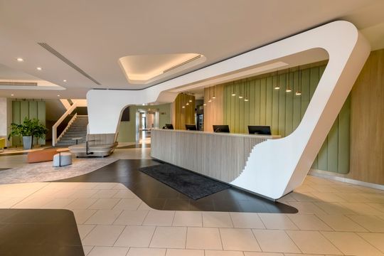 Zależało nam na wprowadzeniu do hotelu nowoczesnego klimatu i energii, podkreślającej atmosferę gwarnego Krakowa i jego biznesowy potencjał dla tej części gości hotelu – mówi Magdalena Kluba, lider zespołu w Dziale Projektów Wnętrz z Iliard Architecture & Interior Design, odpowiedzialnej za projekt wnętrz budynku. Postawiono przed nami niełatwe zadanie połączenia klasycznego, przytulnego designu, pełnego tkanin i naturalnych materiałów z nowoczesnością, energią i pozytywnymi emocjami. Zaproponowaliśmy różnorodne materiały wykończeniowe i oświetlenie, doskonale budujące nastrój wnętrza – od punktowego oświetlenia LED, przez listwy świetlne emitujące ciepłe, pomarańczowe światło w górnych częściach pomieszczeń, po nowoczesne lampy wiszące i designerskie lampy stojące przy komfortowych, głębokich fotelach. W części recepcyjnej postawiliśmy na jasne drewno, a w barze i restauracji na ścianach i kontuarze pojawiają się jego ciemniejsze odcienie. Drewno było bardzo ważne w tym wnętrzu, dlatego też pojawia się w różnych miejscach takich jak wysokie stoły wzdłuż witryn hotelowych czy na panelach wydzielających poszczególne strefy.