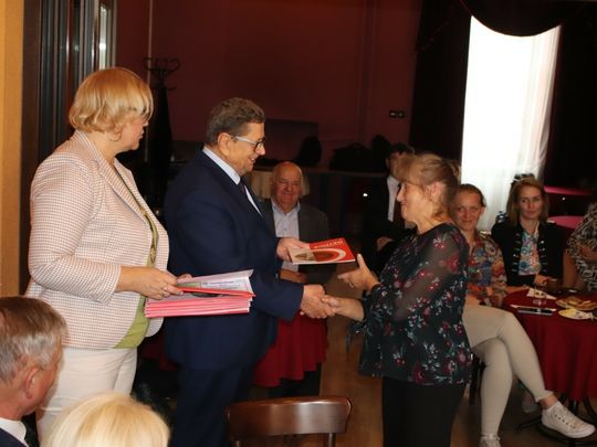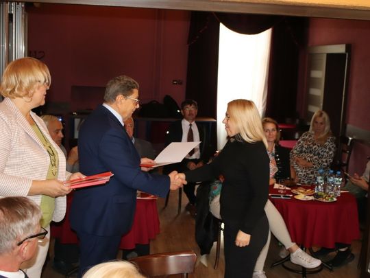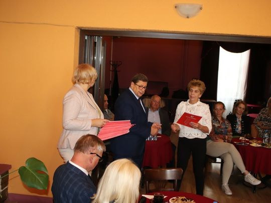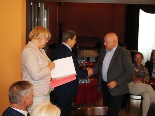 Burmistrz podsumował kampanię wyborczą oraz wręczył pisemne podziękowania sołtysom i przewodniczącym zarządów osiedli za solidną pracę w kadencji 2019-2023, następnie nowo wybrani sołtysi otrzymali legitymacje służbowe.