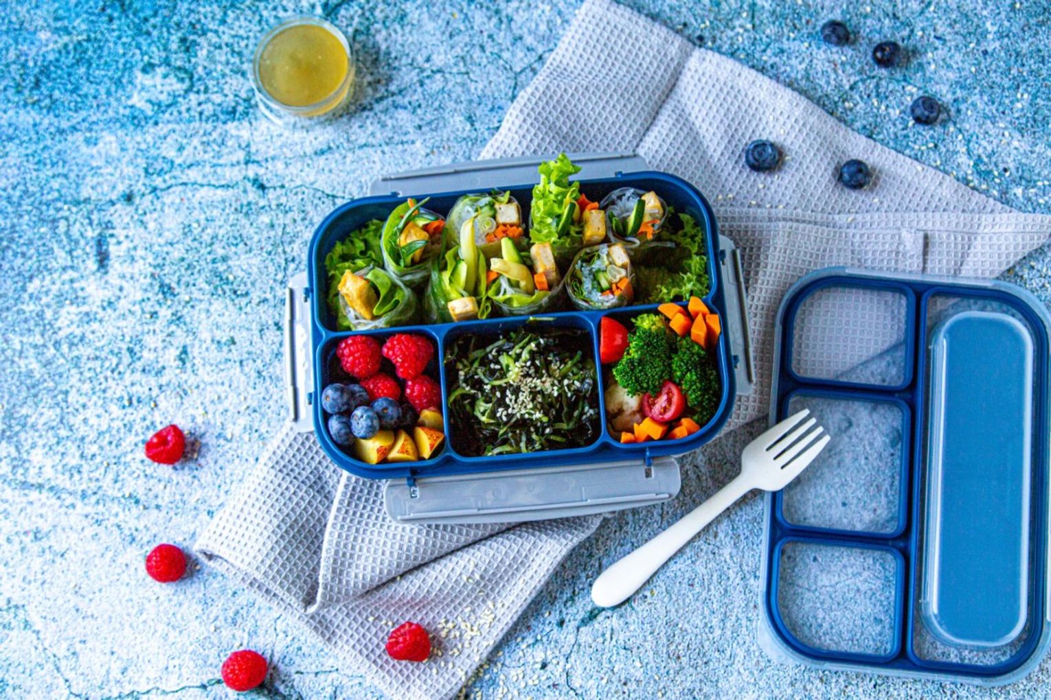 Wszystkie składniki bento poukładaj w oddzielnych przegródkach i ciesz się kolorowym oraz smacznym posiłkiem.