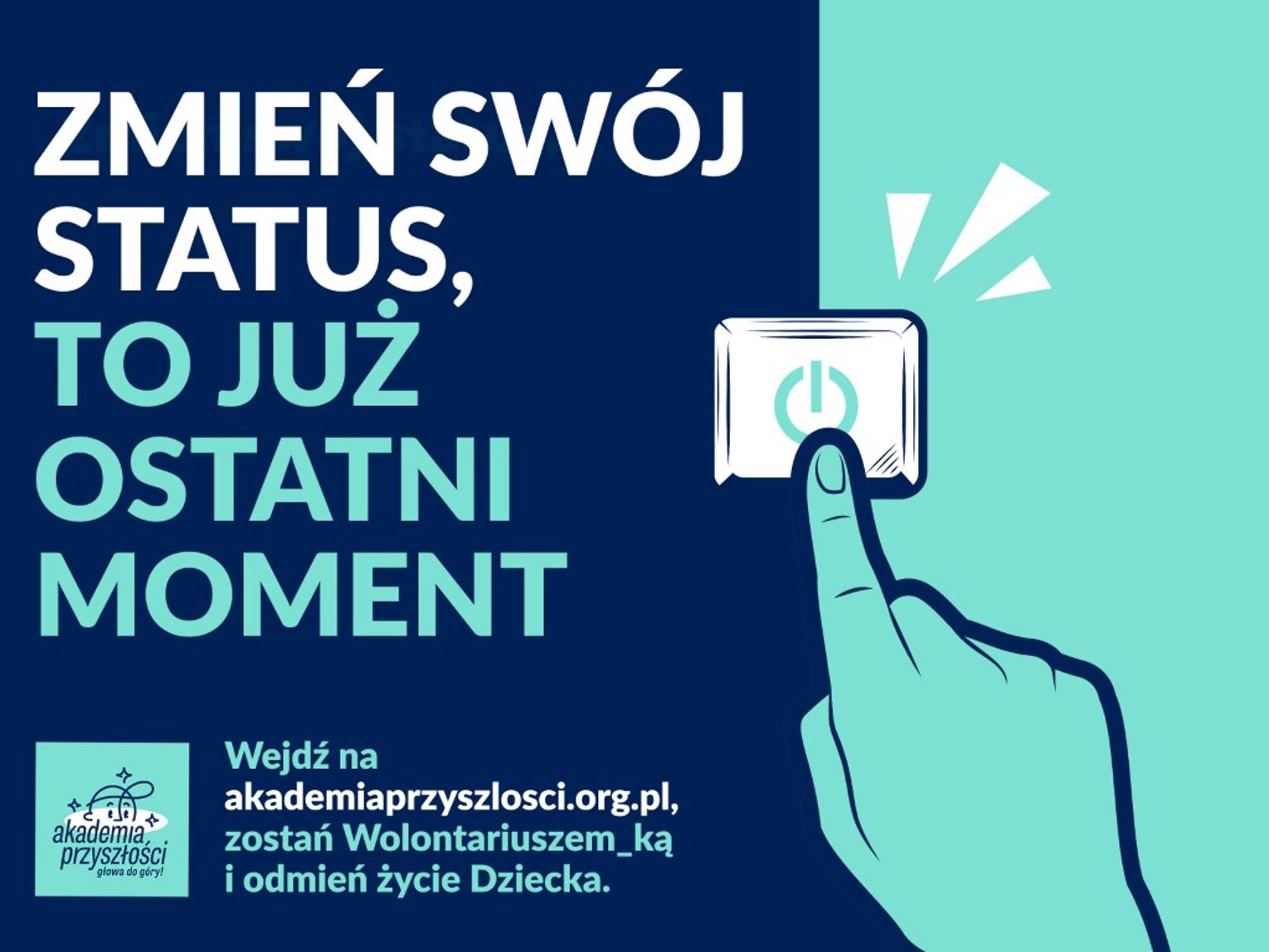 To ostatni moment! Wejdź na www.akademiaprzyszlosci.org.pl, dołącz do wolontariatu w Akademii Przyszłości i odmień życie konkretnego dziecka z województwa zachodniopomorskiego!