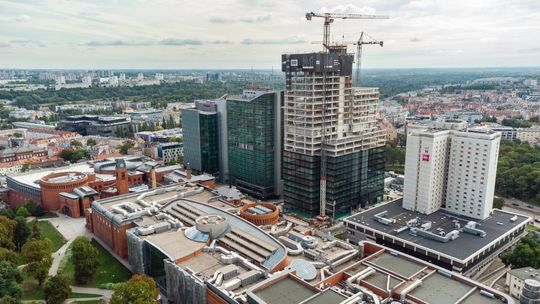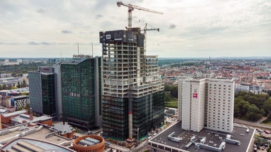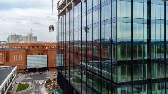 – Wrażenie robi nie tylko wysokość budynku, ale także jego szklana fasada, która dzięki niewidocznym z zewnątrz elementom łączącym wygląda jak gładka lustrzana tafla. Montujemy ją w systemie segmentowym, czyli bez użycia rusztowań – to pierwsze wykorzystanie tego typu technologii w Poznaniu – zdradza Piotr Kledzik.