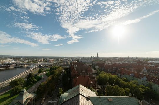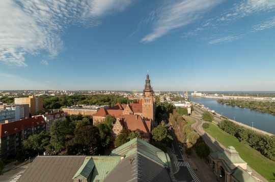 Po obejrzeniu wszystkich atrakcji wewnątrz siedziby zapraszamy zwiedzających do podziwiania panoramy miasta, portu i Odry.