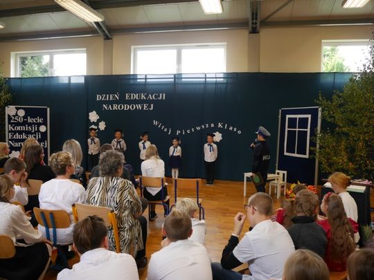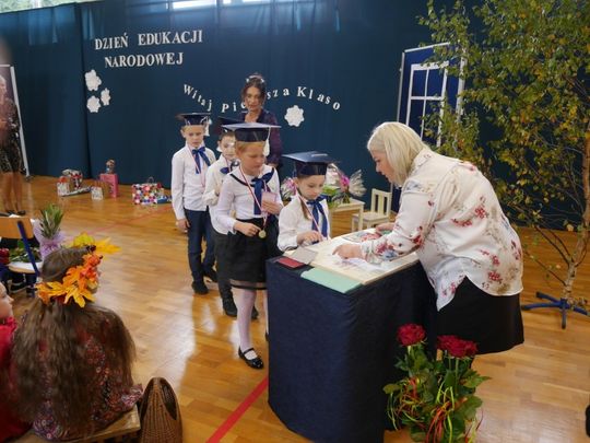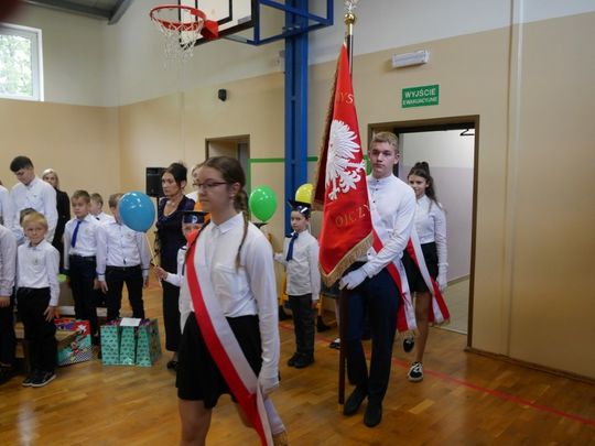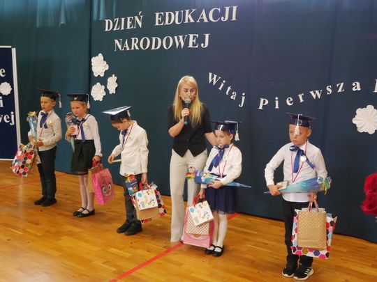 Licznie przybyłych gości przywitała dyrektor szkoły Marzena Stępień następnie odbyło się ślubowanie uczniów klasy pierwszej. Najmłodsi uczniowie szkoły, zgodnie z tradycją musieli potwierdzić swoje zaangażowanie do nauki i wykazać się podstawową wiedzą na temat funkcjonowania w nowym dla siebie środowisku.