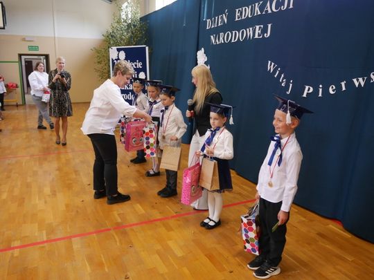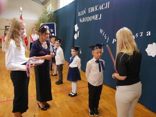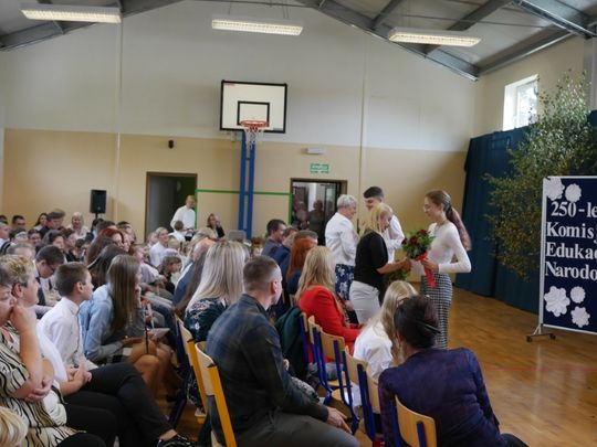 Kolejnym elementem uroczystości było uczczenie zbliżającego się Dnia Edukacji z życzeniami kwiatami i upominkami dla kadry pedagogicznej szkoły.