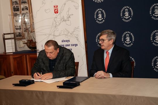Dokument podpisano w budynku PM na Wałach Chrobrego. Politechnikę Morską reprezentował Rektor Wojciech Ślączka, a Polską Żeglugę Morską Dyrektor Naczelny Andrzej Wróblewski oraz Dyrektor Pionu Technicznego Grzegorz Wardzyński.