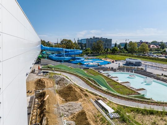 Obok basenów, saunarium i amfiteatru, który zimą zamieniać się będzie w lodowisko,