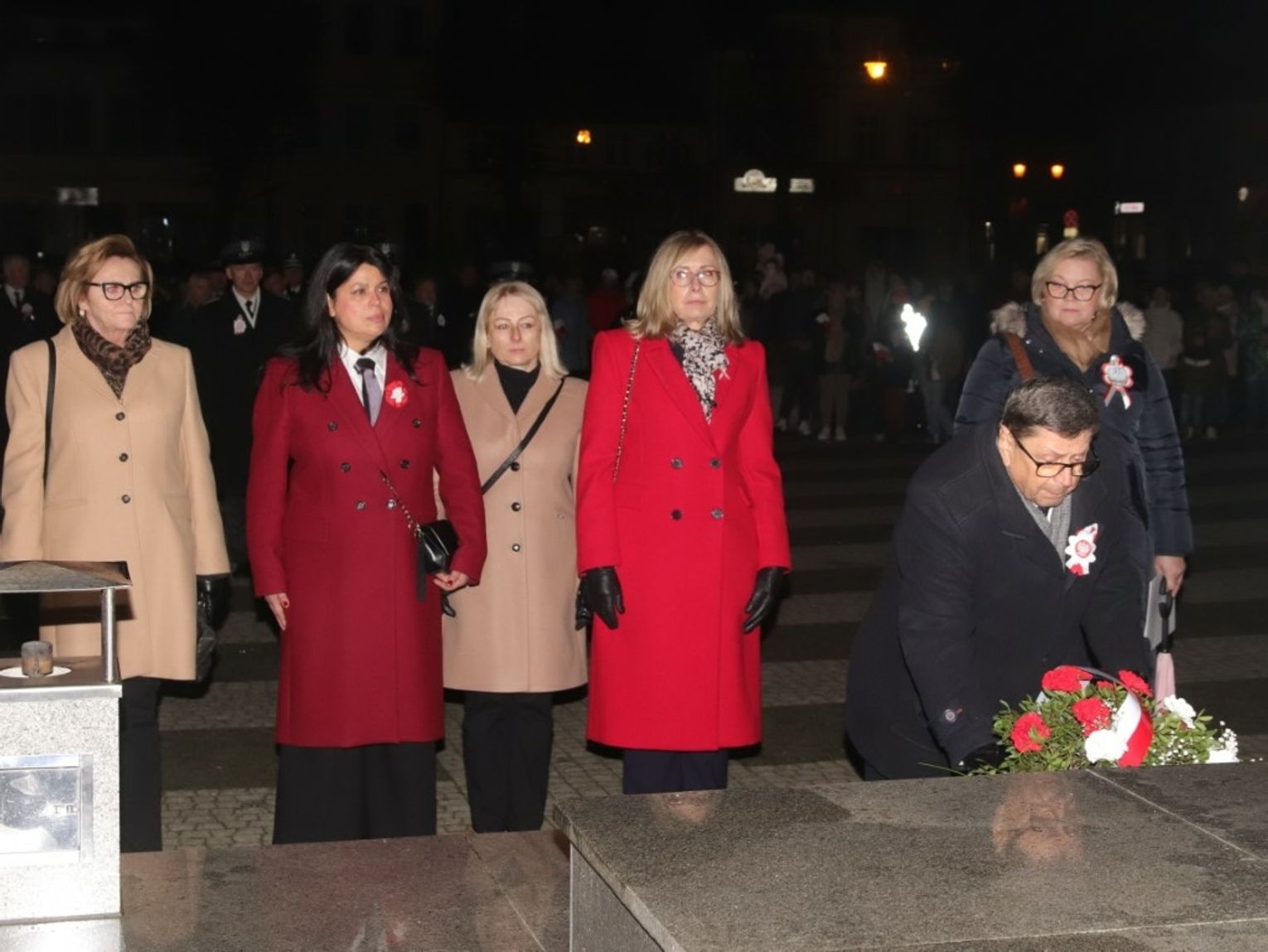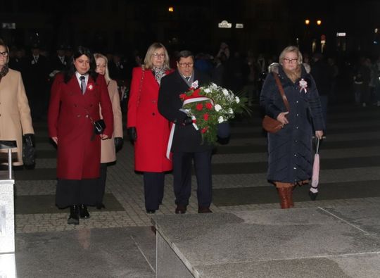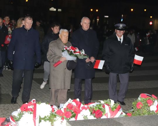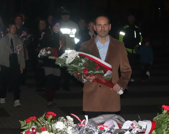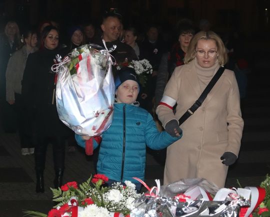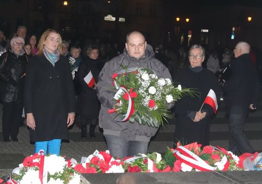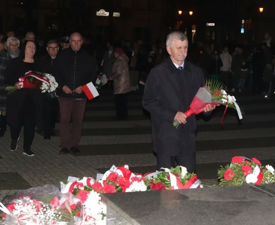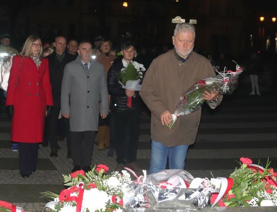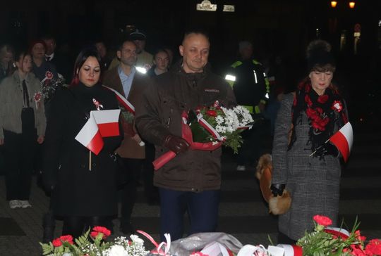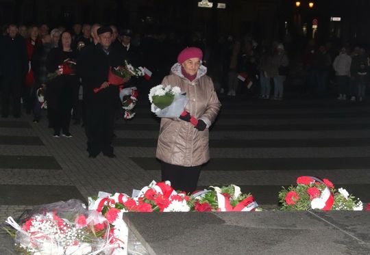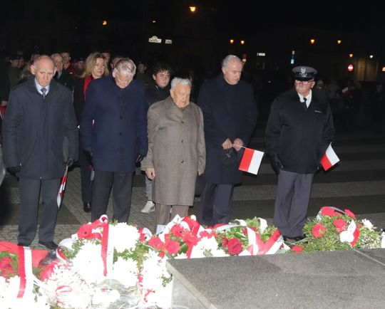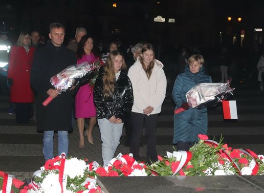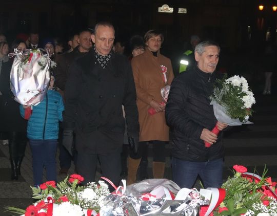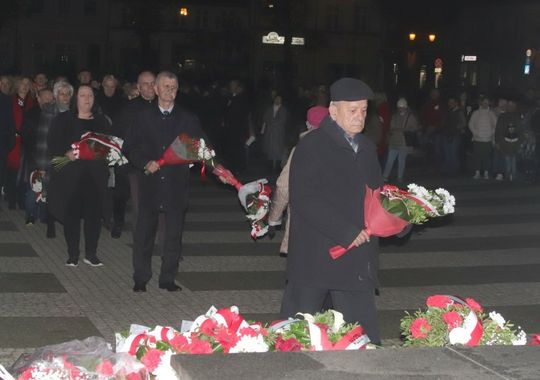 Na zakończenie uroczystości przedstawiciele uczestniczących delegacji złożyli wiązanki kwiatów przy Pomniku Pamięci.