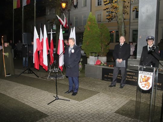 Uroczystości rozpoczęły się okolicznościową Mszą Świętą w intencji Ojczyzny z udziałem Pocztów Sztandarowych oraz Kompani Honorowej z 36 Dywizjonu Rakietowego Obrony Powietrznej im. gen. broni W. Andersa z Mrzeżyna dowodzonej przez ppor. Marcina Stępniewskiego. Po nabożeństwie uczestnicy uroczystości prowadzeni przez Młodzieżową Orkiestrę Dętą „Red Swing Low Gryfice” przemaszerowali na Plac Zwycięstwa, gdzie rozpoczęła się oficjalna część obchodów. Podczas przemówień uczczono pamięć tych, którzy walczyli na przestrzeni wieków o niepodległość Polski.