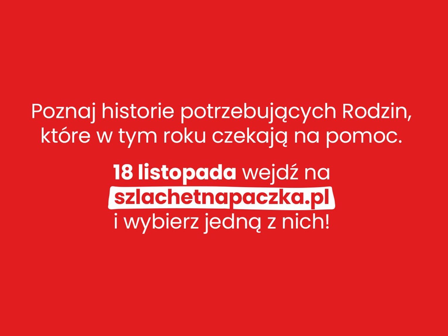 18 listopada wejdź na www.szlachetnapaczka.pl, poznaj historie potrzebujących rodzin i zrób „dzień dobry" jednej z nich!