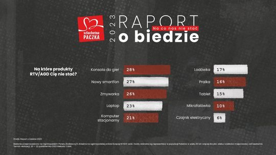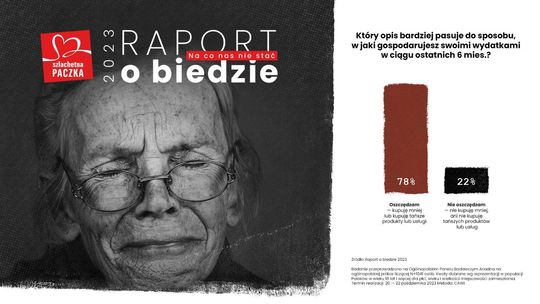 „W skrajnym ubóstwie wciąż żyje blisko 400 tys. dzieci i 300 tys. seniorów. W ciągu roku przybyło ich ponad 40 tys. W Szlachetnej Paczce widzimy to zjawisko. Ma twarze konkretnych ludzi i rodzin, które w zderzeniu z kryzysem ekonomicznym, wypadły na boczny tor życia. Codziennie dokonują wyborów tak trudnych, że trudno słuchać ich opowieści. Ale właśnie bycie wysłuchanym i zauważonym to być może dla nich jedyna szansa na życie” – napisała we wstępie do Raportu o biedzie 2023 Joanna Sadzik, Prezeska Stowarzyszenia WIOSNA, które organizuje Szlachetną Paczkę.