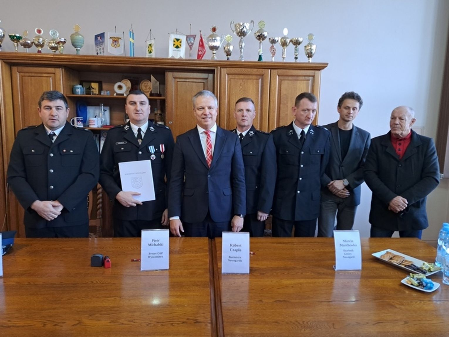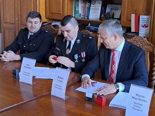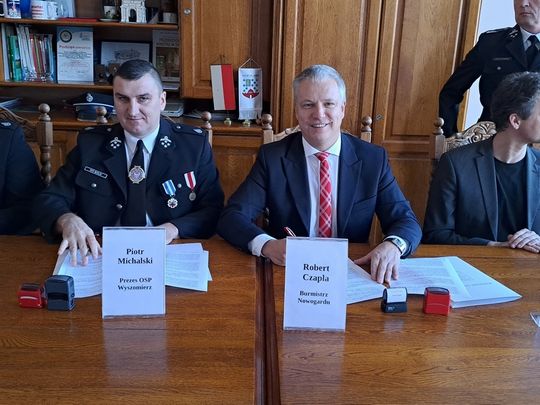 W Urzędzie Miejskim w Nowogardzie została podpisana Umowa podpisana przez burmistrza Roberta Czaplę, prezesa OSP Wyszomierz oraz skarbnika gminy Nowogard Marcina Marchewkę na przekazanie kwoty 300 tys. złotych na zakup samochodu ratowniczo-gaśniczego.