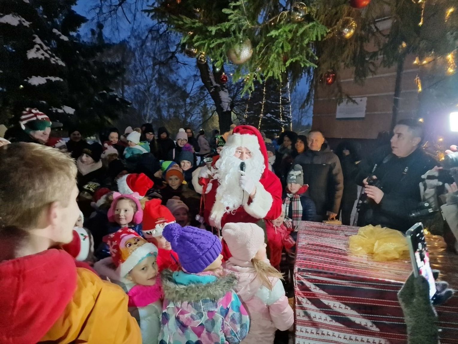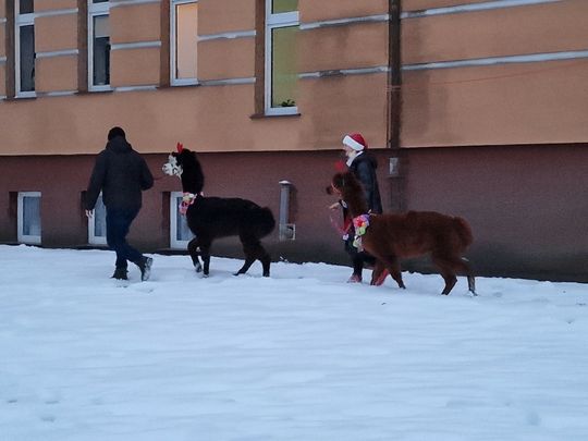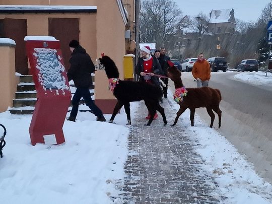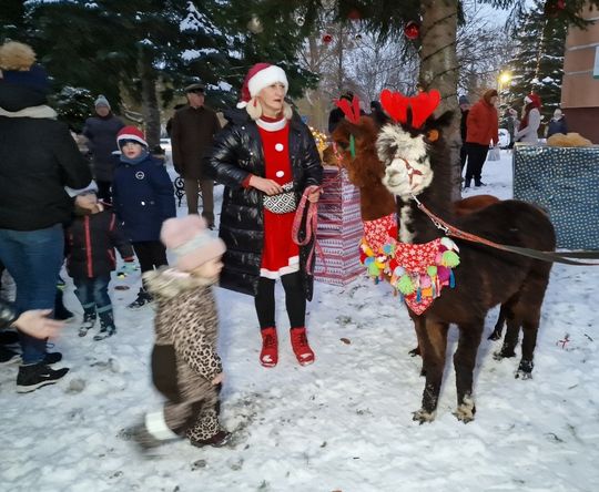 Natomiast sama uroczystość zgromadziła liczną rzeszę nie tylko najmłodszych mieszkańców. Specjalną atrakcją okazały się ucharakteryzowane na renifery bardzo sympatyczne lamy no i oczywiście wyjątkowy gość z worem pełnym słodyczy – Mikołaj.