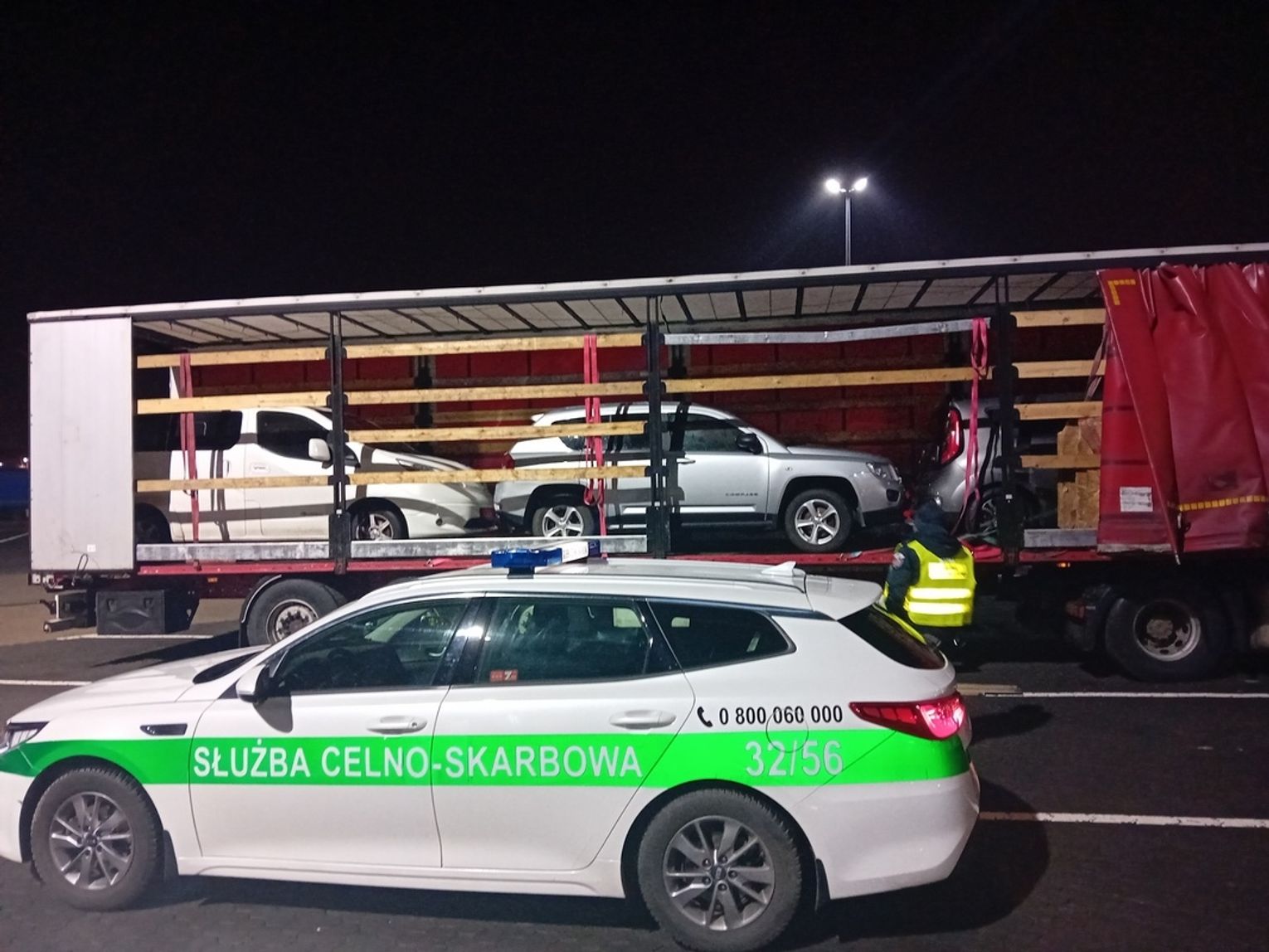 Samochody przewożone były na naczepie i nie zostały zgłoszone do odprawy w momencie wjazdu na obszar Unii Europejskiej. Z dokumentów wynikało, że samochody przewożone są z Norwegii do odbiorców w Ukrainie. Łączna wartość celna zatrzymanych samochodów 104 315 zł. Sprawcy chcieli uniknąć płatności należności celno-podatkowych w kwocie 34.879 zł (w tym cło 8.329 zł, akcyza 6.530 zł i VAT 20.020 zł).