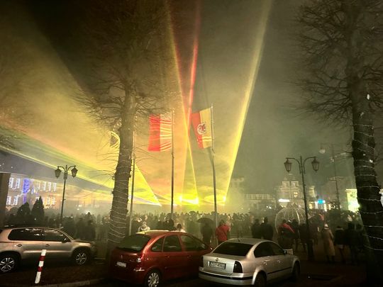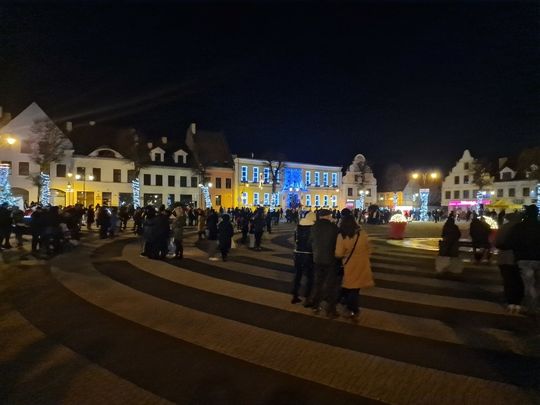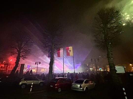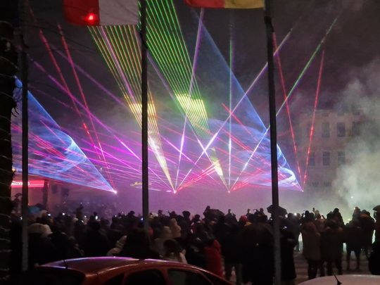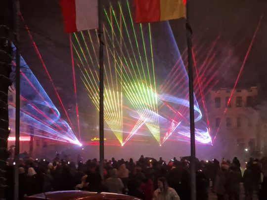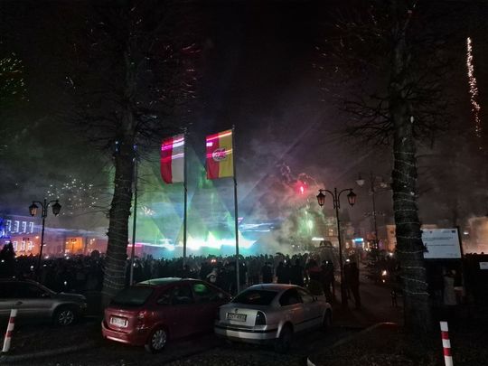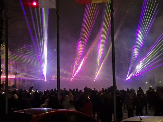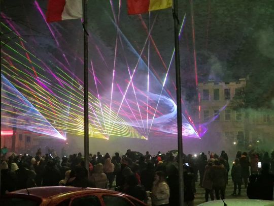 W Sylwestrową Noc burmistrz Gryfic zaprosił mieszkańców na na spotkanie na Placu Zwycięstwa. Była zabawa przy muzyce i wspaniały pokaz laserowych świateł na przywitanie Nowego 2024 roku.