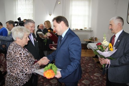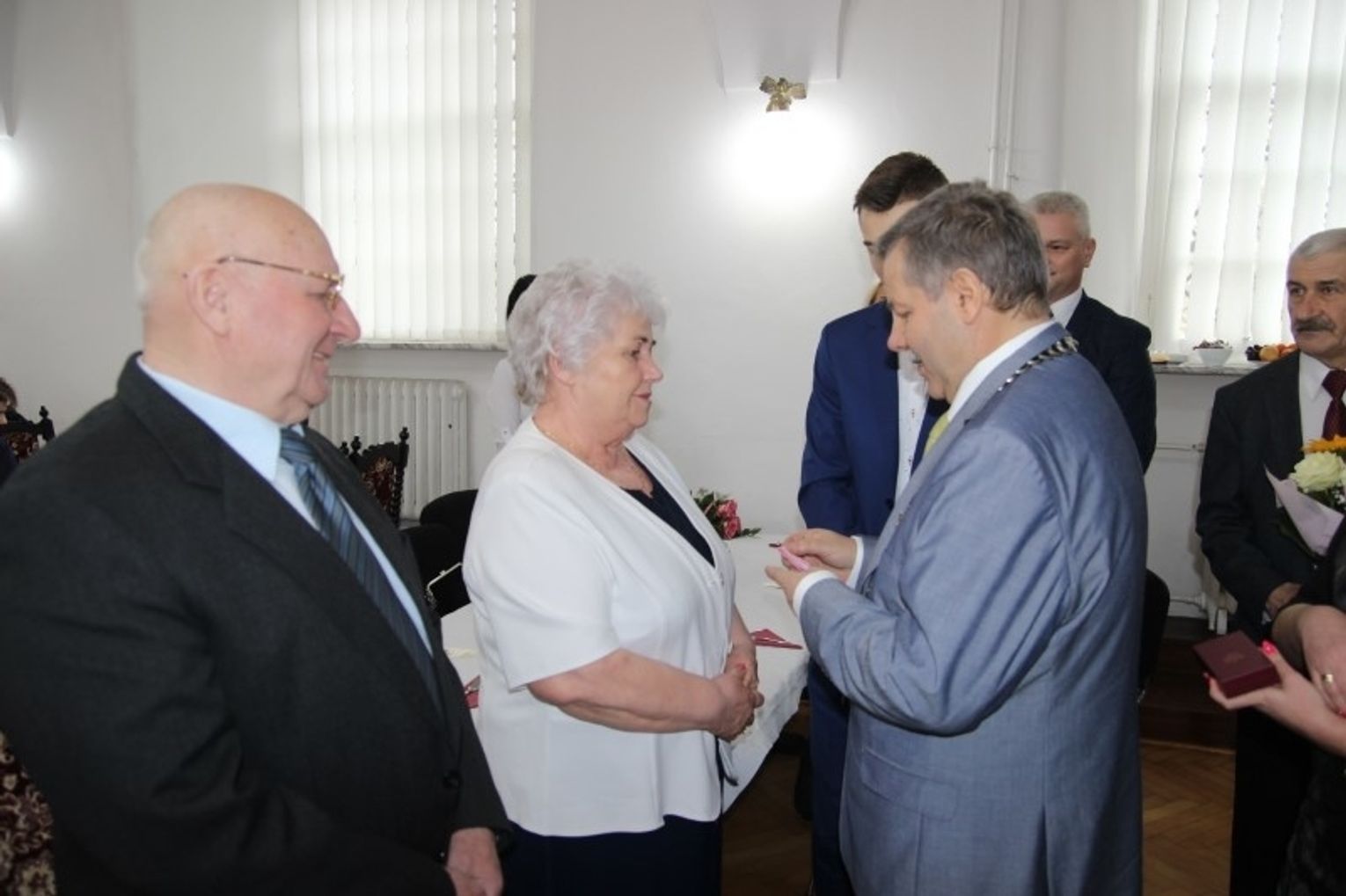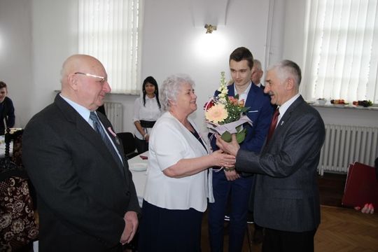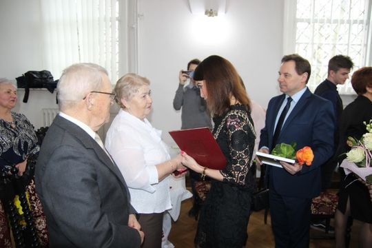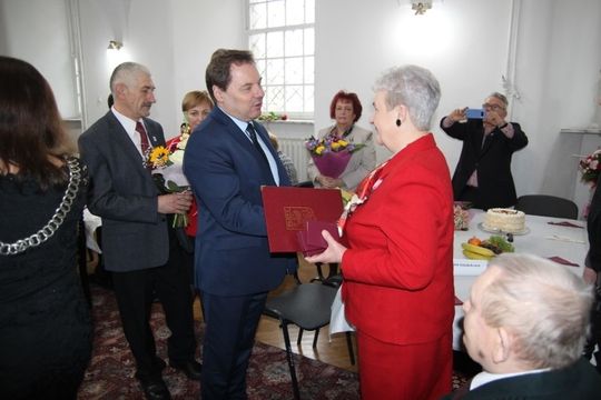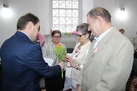 Medale, listy gratulacyjne oraz wiązanki kwiatów odebrali Państwo Maria i Kazimierz Durysowie, Maria i Zbigniew Goździkowie, Helena i Wojciech Jasińscy, Genowefa i Zbigniew Lewandowscy, Irena i Tadeusz Milewscy, Bronisława i Jan Ochwat oraz Józefa i Wasyl Sybidłowie.