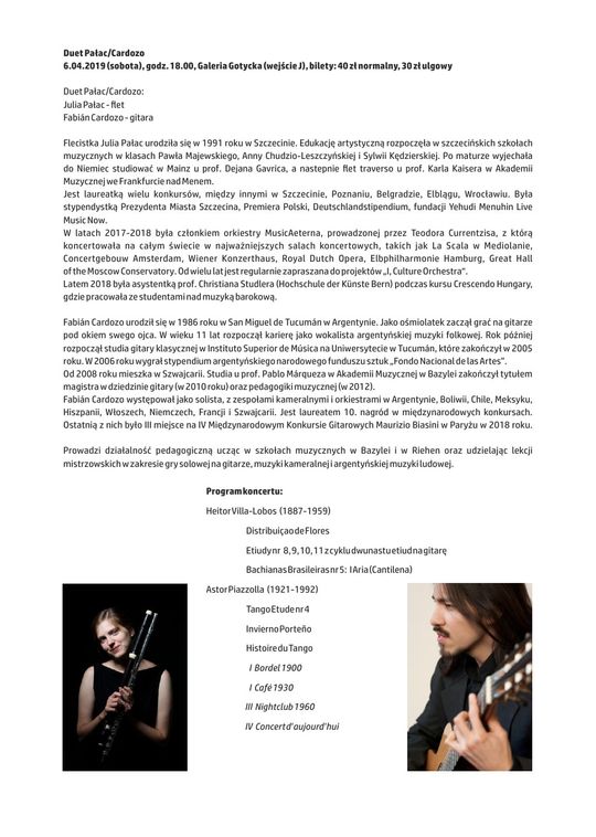 W przyszły weekend w programie wydarzenia są koncerty Duetu Pałac/Cardozo oraz Marcina Dylli.