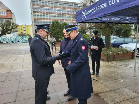 W przekazaniu wraz z burmistrzem Nowogardu Robertem Czaplą udział wzięli przedstawiciele KP PSP z Goleniowa z zastępcą Komendanta Powiatowego bryg. Markiem Michalakiem, przedstawiciele Rady Powiatu z Przewodniczącą Rady Anetą Wysoczańską radni RM w Nowogardzie ze Stanisławem Saniukiem strażacy i mieszkańcy Nowogardu.