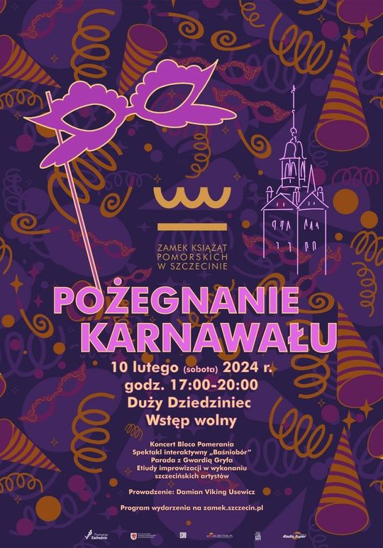 I dzieci, i dorosłych do czasów Księstwa Pomorskiego przeniosą historie związane ze szczecińskim dworem. Prowadzący pożegnanie karnawału znany szczeciński stand-uper Damian Viking Usewicz wraz z dworskimi wesołkami zaprezentują, jak wyglądały bale na szczecińskim dworze.