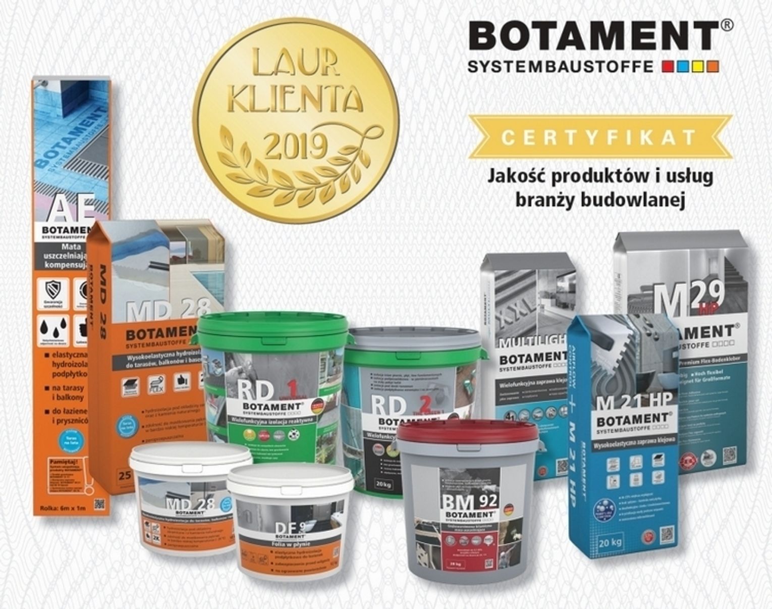 - Jest nam niezmiernie miło, że marka Botament została doceniona przez polskich konsumentów. Od początku działalności staramy się dostarczać klientom sprawdzone rozwiązania, które odpowiadają konkretnym potrzebom. Każdego dnia jesteśmy w stałym kontakcie z wykonawcami, inwestorami czy architektami, którzy doceniają nasze zaangażowanie i wsparcie techniczne na każdym etapie - od projektu, przez wybór odpowiednich produktów po i ich prawidłowe zastosowanie. Złoty Laur Klienta 2019 to niezwykły komplement, który otrzymaliśmy od naszych klientów. – mówi Tomasz Śmierzchała, Menadżer ds. Spraw Strategii i Rozwoju marki Botament.