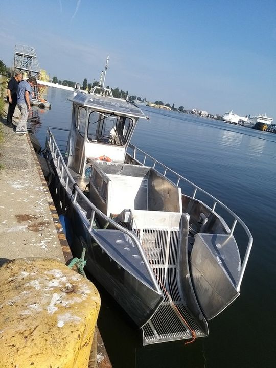 Jednostka może zebrać na raz 2 tony zanieczyszczeń płynnych lub 800 kg stałych. Napędzana jest elektrycznie, osiąga prędkość kilku węzłów. Mechanizm podnoszenia odpadów z powierzchni (lub tuż spod niej) działa podobnie do koparki – na siłowniki. Jak duże śmieci mogą być zabierane - możecie się Państwo zorientować zerkając na załączone fotografie (fot. prof. Maciej Taczała).