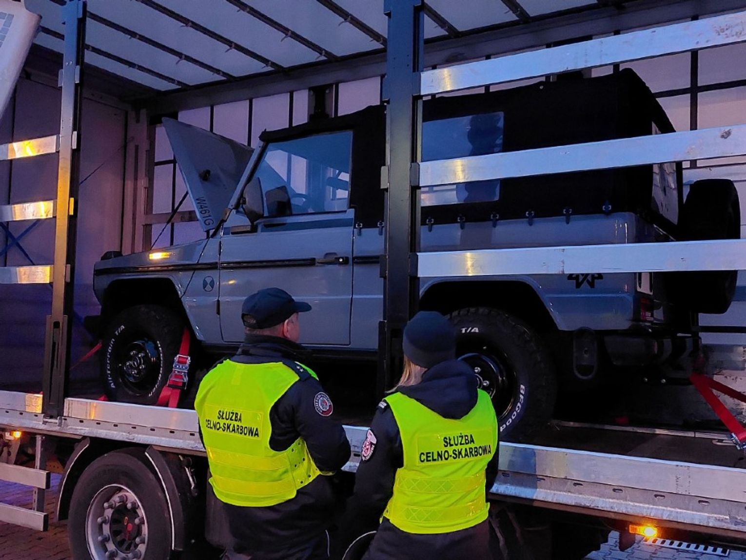 Rutynowa kontrola prowadzona przez funkcjonariuszy KAS na przejściu granicznym Kołbaskowo-Pomellen pozwoliła na zatrzymanie skradzionych w Niemczech samochodów. Samochody przewożone były samochodem ciężarowym. Czujność kontrolujących wzbudziły dokumenty towarzyszące przesyłce, przedstawione przez kierowcę. Pod plandeką „tira" znajdowały się dwa pojazdy o znacznej wartości: terenowy pick-up Mercedes Benz klasy G oraz terenowy Nissan Navarra.