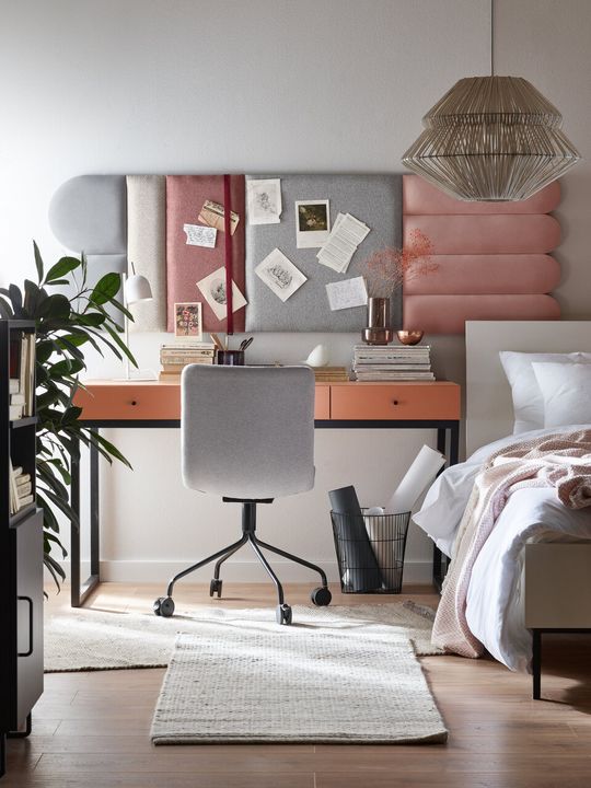 Kolory mają ogromny wpływ na nasze samopoczucie i produktywność. Dobierając paletę barw do strefy home office w sypialni, warto wziąć pod uwagę istniejący już wystój pomieszczenia, by harmonijnie wpasować się w jego charakter. Uwaga! Zachowajmy przy tym umiar – dzięki temu nie przytłoczymy przestrzeni zbyt intensywnymi barwami.