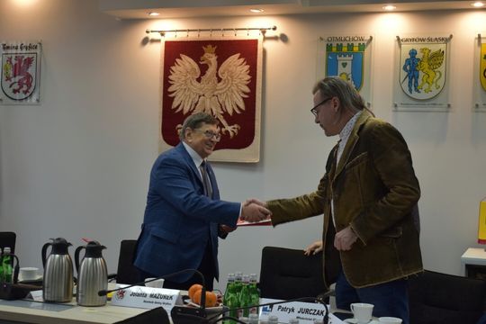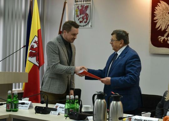 Patryk Jurczak właściciel firmy Zakład Robót Elektro-Energetycznych Patryk Jurczak który będzie wykonawcą budowy kablowej linii oświetleniowej 0,4 kV w ulicach Panoramiczna i Pogodna.