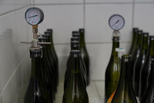 Kolejnym etapem produkcji jest usunięcie osadu i zamknięcia "szampana" w butelce. Jest to możliwe właśnie dzięki użyciu niedawno zakupionej linii technologicznej – zamrażarki szyjek butelek, urządzenia do „degorżowania" (usuwania osadu) i „dozowania liqueur d'expédition" (dodawania cukru) oraz korkownicy.