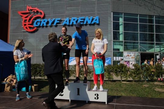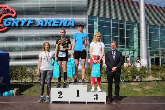 Wśród pań pierwsze miejsce zajęła Małgorzata Zaborowska z Gryfic reprezentująca OSP Płoty z czasem 20 minut i 31 sekund który okazał się jej nowym rekordem życiowym. W krótkiej rozmowie zaraz po biegu zwyciężczyni powiedziała naszemu reporterowi, że jest pełna uznania dla organizatorów za świetnie przygotowaną trasę oraz doskonałą organizację zawodów, dla niej samej impreza w której wystartowała po raz pierwszy okazała się bardzo szczęśliwa – nie tylko pierwsze miejsce ale też „życiówka” jeżeli nic się nie wydarzy na pewno spotkamy się za rok na kolejnym „Gryf Arena Run”.