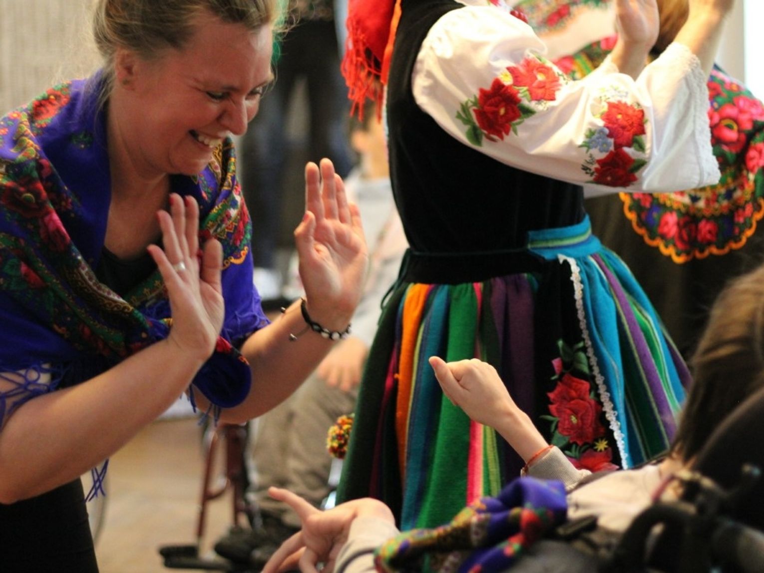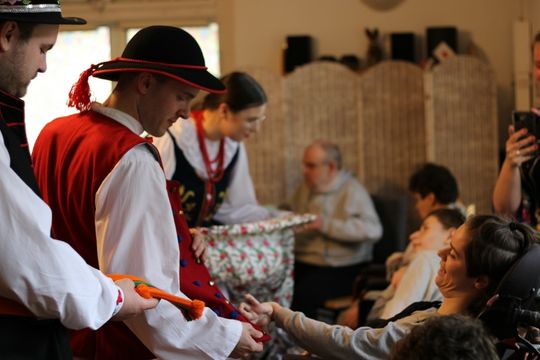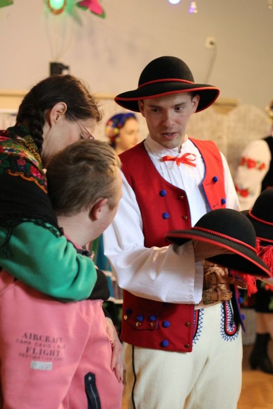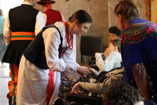 Dla tancerzy z Zespołu to połączenie ogromnej pasji do polskiego folkloru z wykształceniem medycznym, które pomaga przy pracy z osobami z niepełnosprawnością. Bogate stroje, różnorodne dodatki i rekwizyty potrzebne do występów, a przede wszystkim sam taniec i śpiew są doskonałą stymulacją sensoryczną, która jest potrzebna w procesie rehabilitacji. Pokaz taneczny, pieśni ludowe oraz prezentacja strojów, które pensjonariusze Ośrodka mogli dotykać i przymierzać to elementy arteterapii, które członkowie Zespołu wpletli w folkowy pokaz.