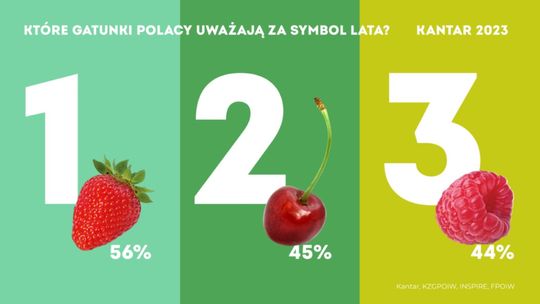 Truskawki są ulubionym owocem Polaków (41%). W badaniach podsumowujących sezon 2023, wskazało je o 6 p.p. badanych więcej niż przed dwoma laty. Pozycja pozostałych gatunków nie uległa zmianie. Drugie miejsce zajęły jabłka (34%), dalej czereśnie (15%), maliny (11%), gruszki (8%), śliwki (7%) i nasze borówki (6%). Wszytskie te owoce silnie kojarzą się z polskim ogrodnictwem.