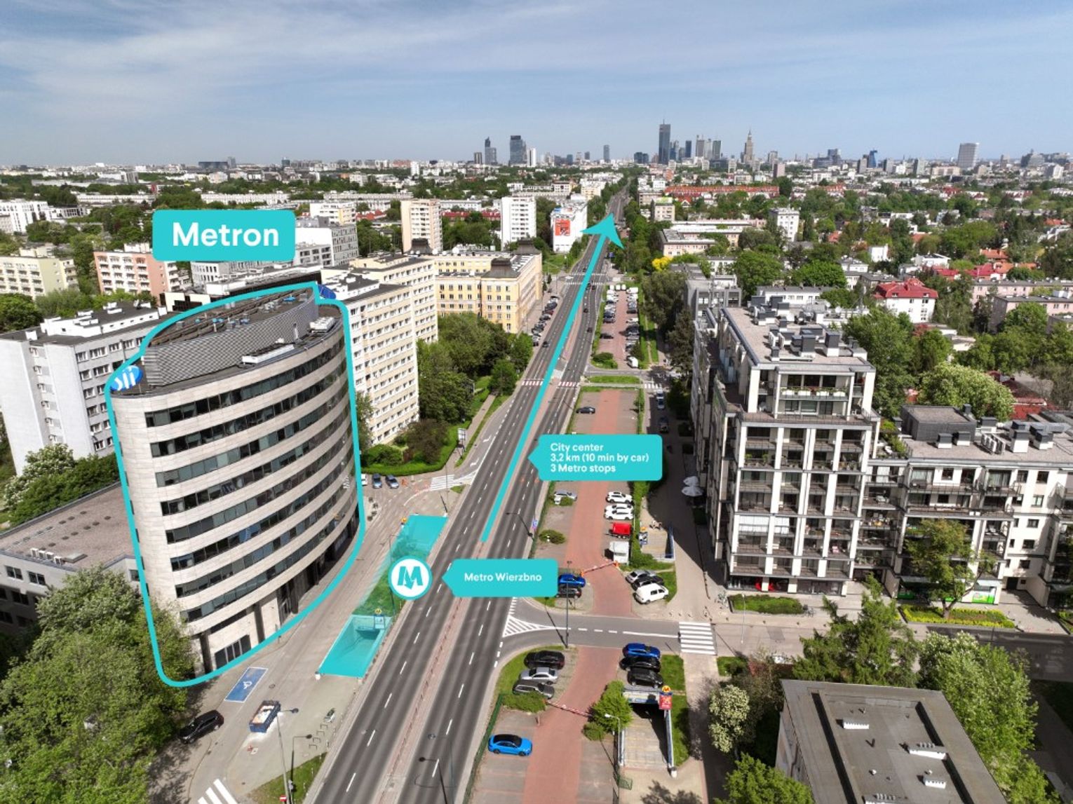Biurowiec Metron wyróżnia strategiczna lokalizacja przy Alei Niepodległości, kluczowej arterii północ-południe w Warszawie. Dziękim swojemu wyjątkowemu położeniu budynek (nad stacją metra M1 - Stacja Wierzbno) gwarantuje najemcom dogodny (8-minutowy) dojazd do Centrum. Dodatkowym jego atutem jest bliskość istniejących udogodnień w prężnie rozwijającej się dzielnicy Mokotów.