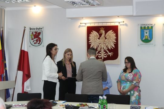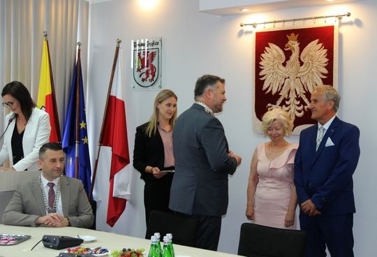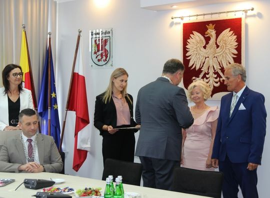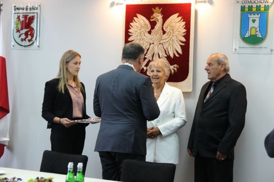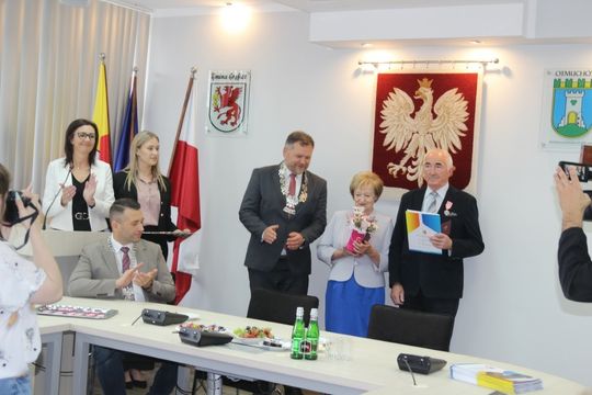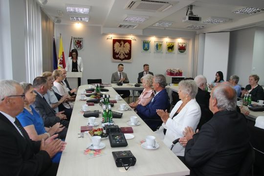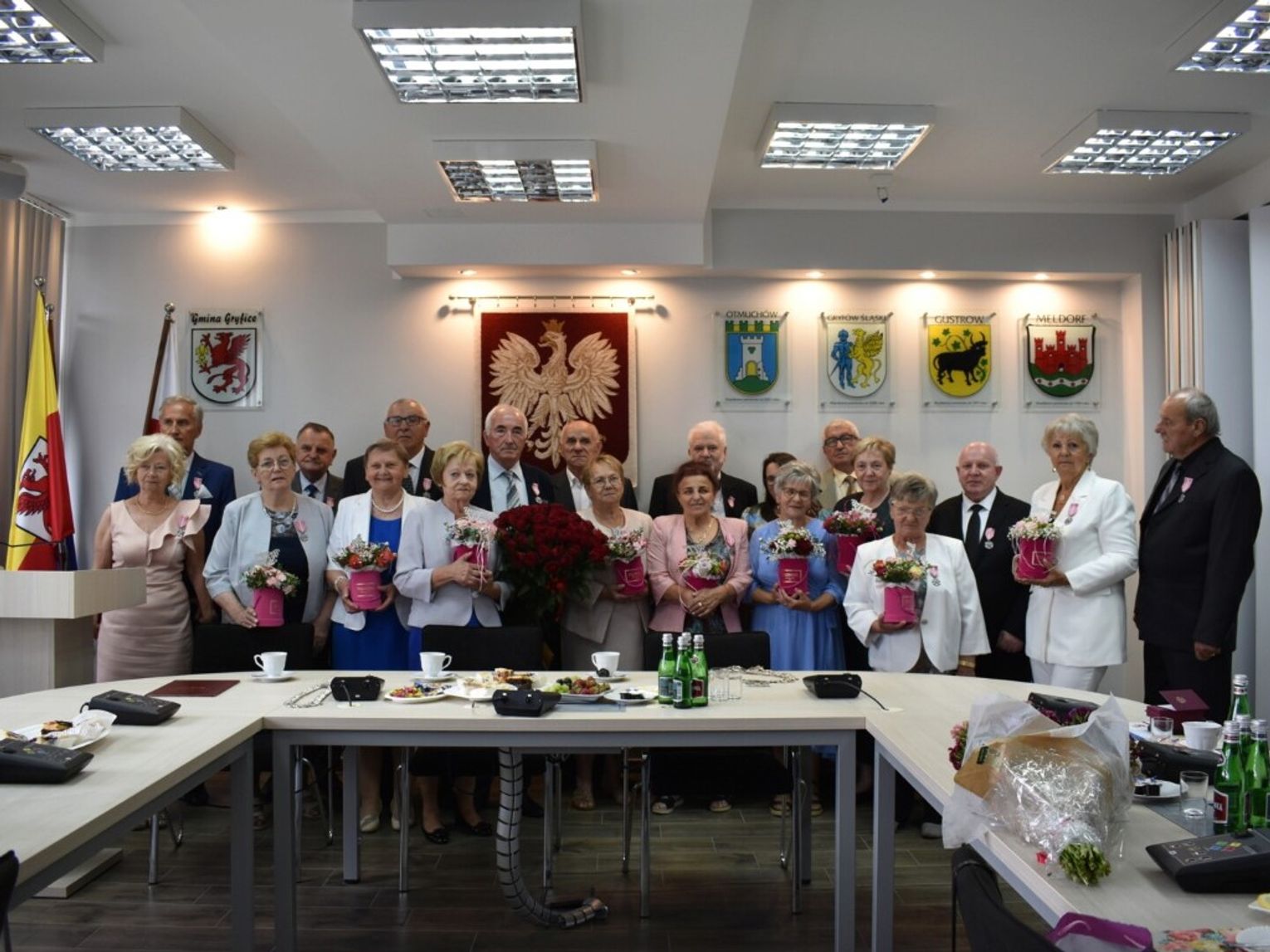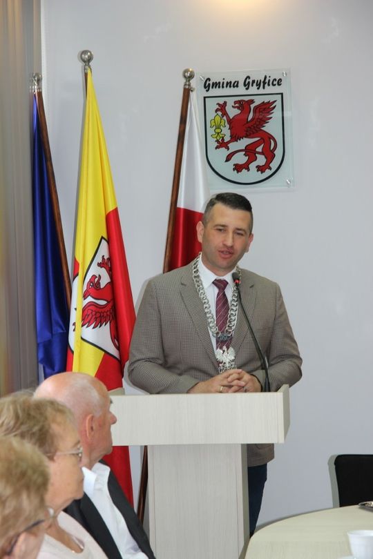 Na inaugurację uroczystości Kierownik Urzędu Stanu Cywilnego w Gryficach Justyna Wojda powitała jubilatów i przybyłych gości. Gratulacje wraz ze słowami uznania za tak długie, zgodne i szczęśliwe pożycie małżeńskie, które jest wspaniałym przykładem dla młodego pokolenia złożyli też Burmistrz Gryfic oraz Wójt Brojc.