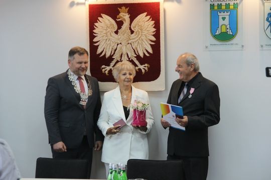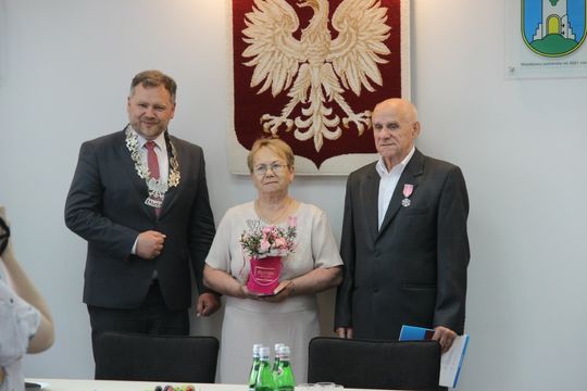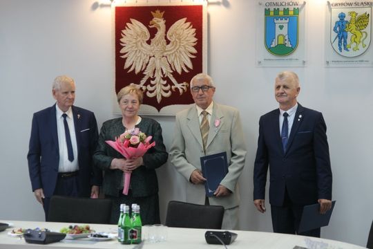 W trakcie aktu dekoracji jubilaci uhonorowani zostali okolicznościowymi listami gratulacyjnymi oraz wiązankami kwiatów z okolicznościową dedykacją.
