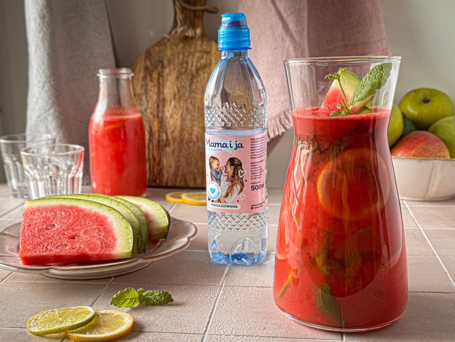 - Dodaj pokrojoną w plasterki cytrynę i limonkę, listki mięty i opcjonalnie kostki lodu.