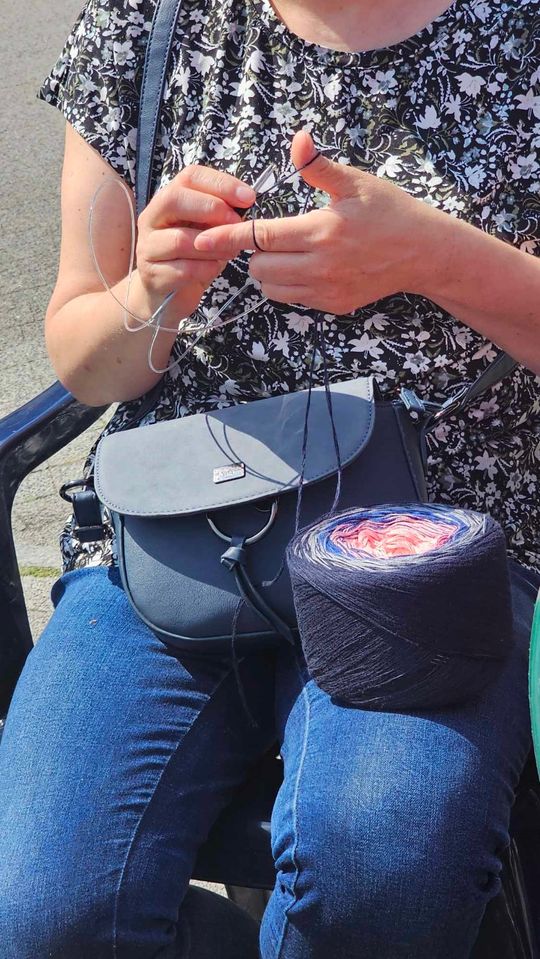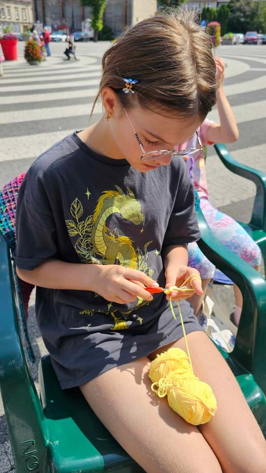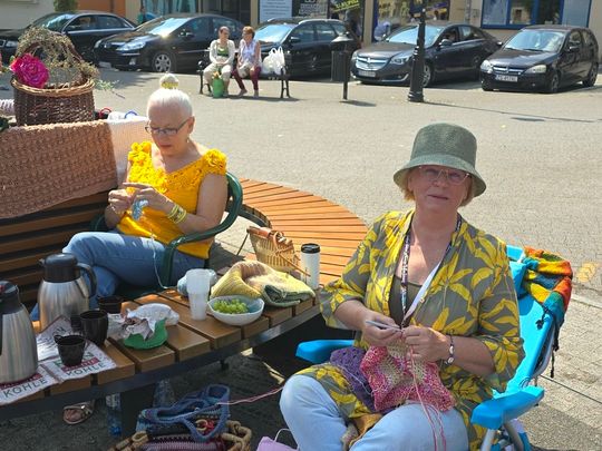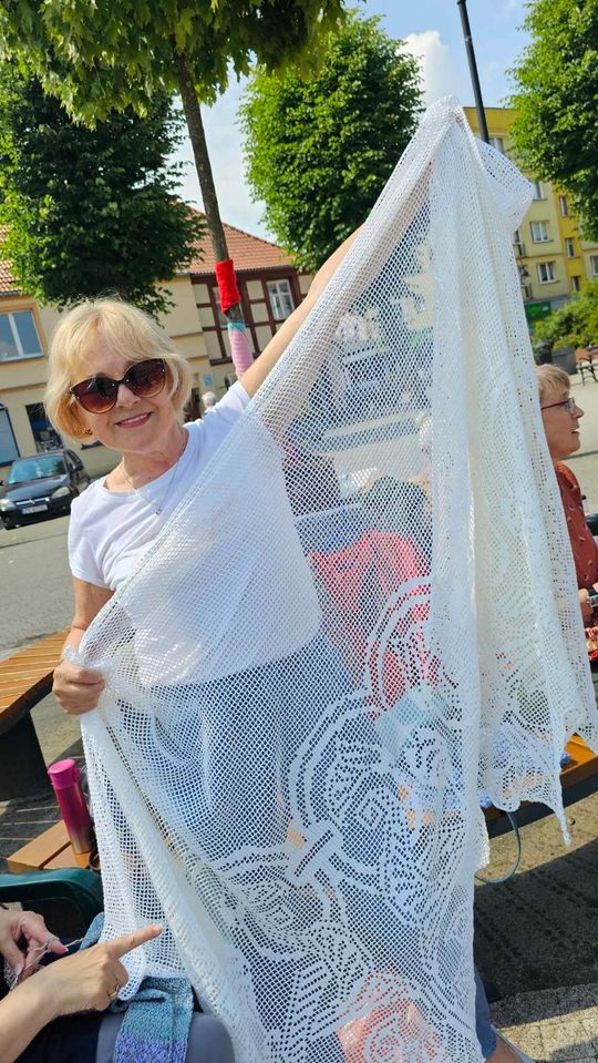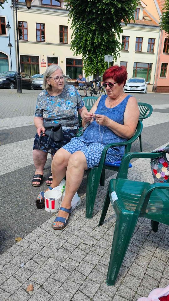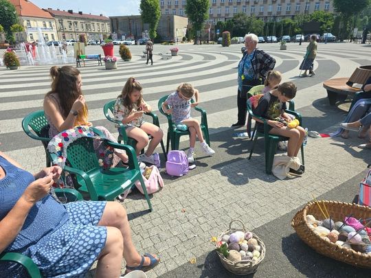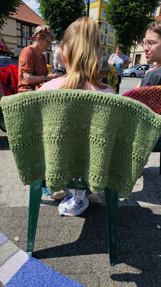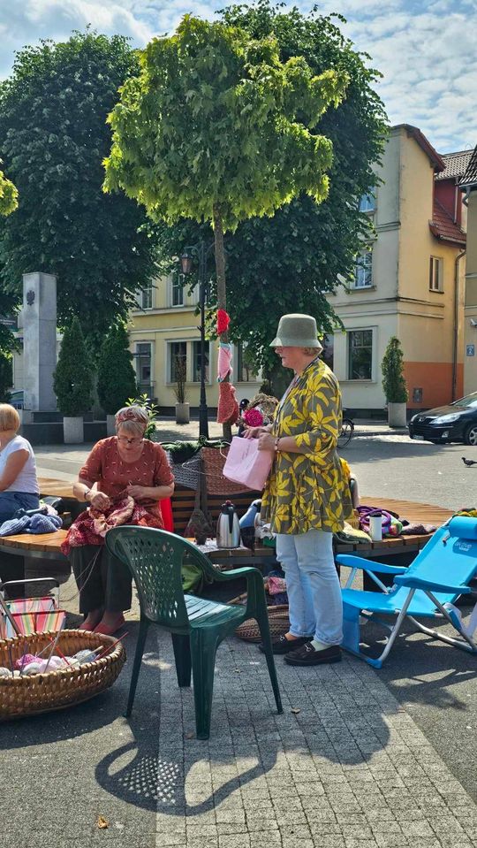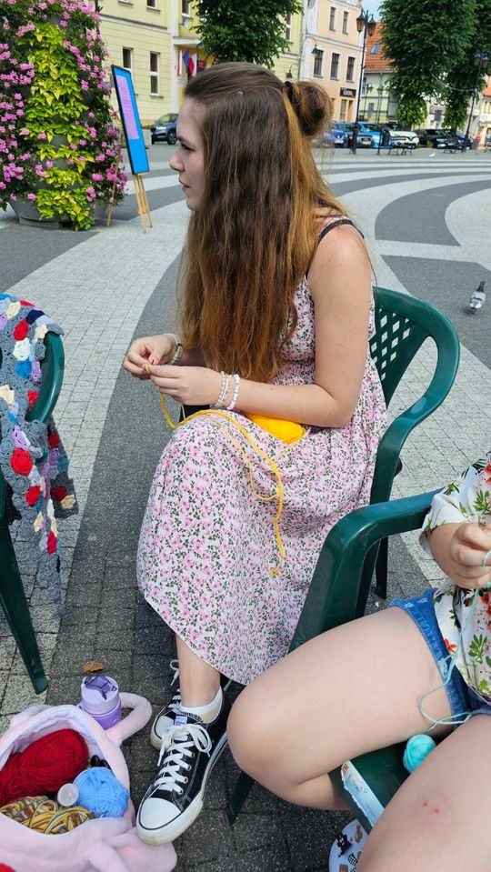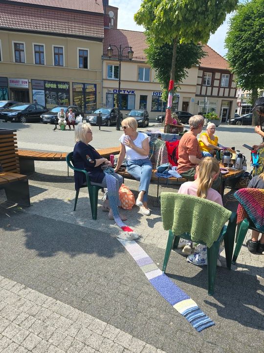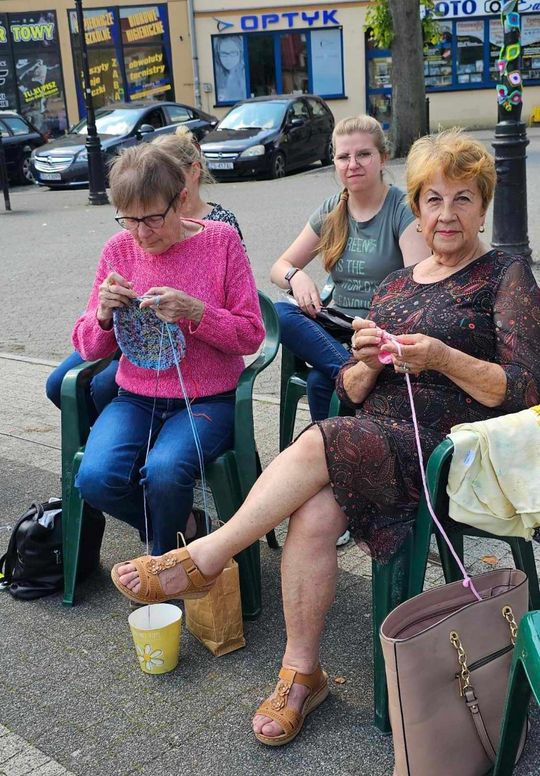 Przy sprzyjającej pogodzie wśród zarówno dziergających jak i osób tylko obserwujących wydarzenie trwała przyjazna i inspirująca atmosfera. Wspólna pasja łączy, to także wspaniała okazja do wymiany doświadczeń, pomysłów i oryginalnych technik.
