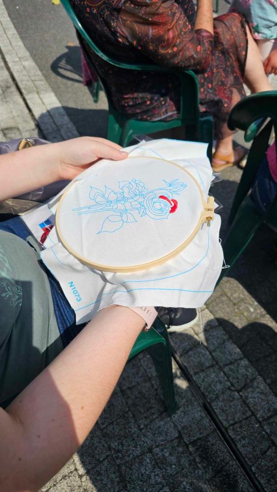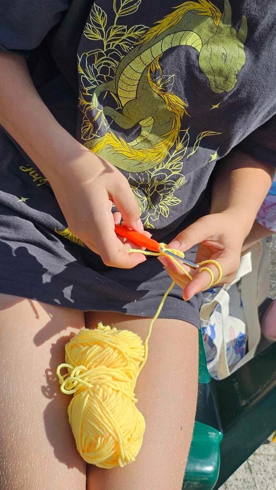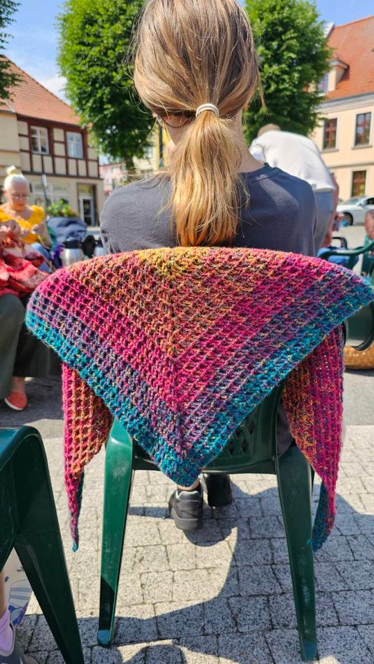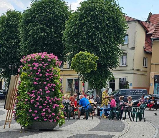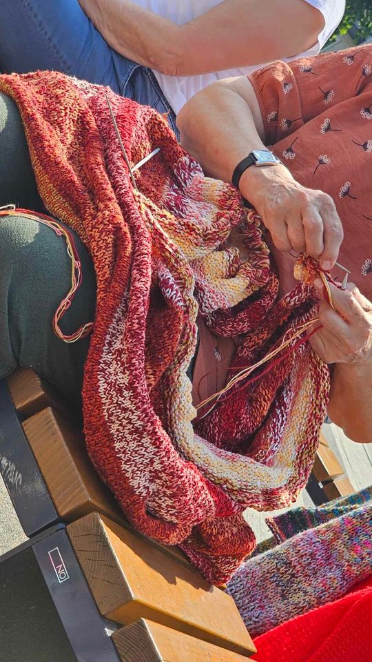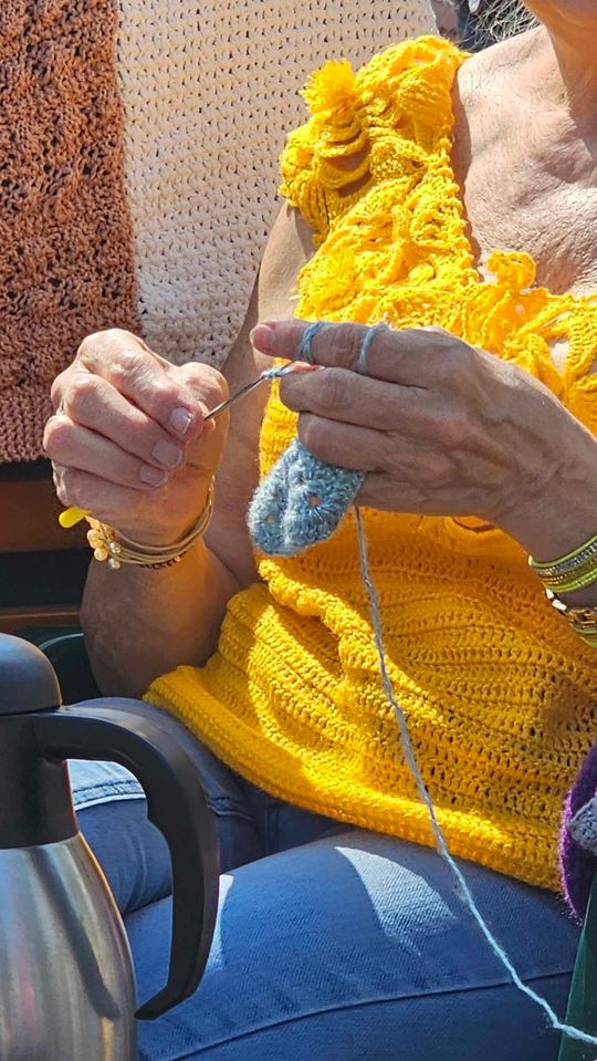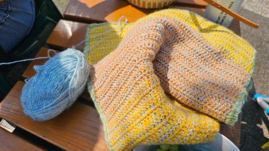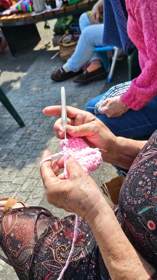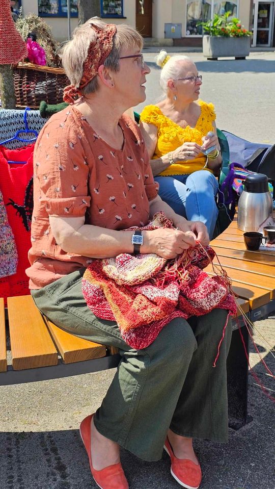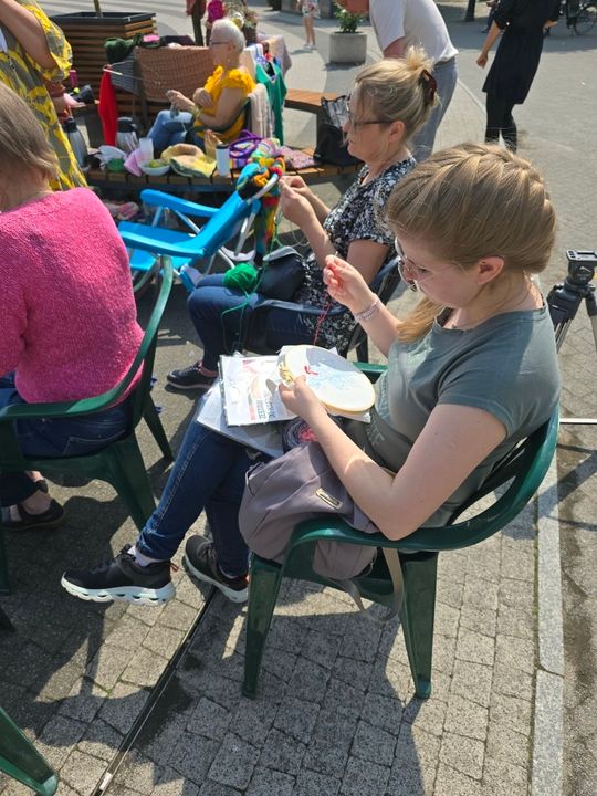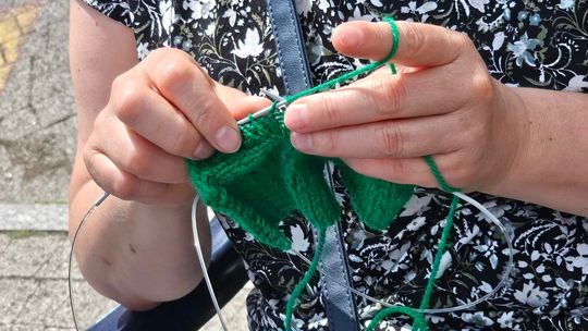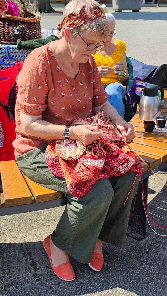 Przy sprzyjającej pogodzie wśród zarówno dziergających jak i osób tylko obserwujących wydarzenie trwała przyjazna i inspirująca atmosfera. Wspólna pasja łączy, to także wspaniała okazja do wymiany doświadczeń, pomysłów i oryginalnych technik.