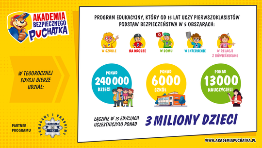 W XV odsłonie „Akademii Bezpiecznego Puchatka” wzięło udział ponad 240 tys. dzieci, lekcje przeprowadziło ponad 13 tys. nauczycieli w ponad 6 tys. szkół podstawowych. Od początku funkcjonowania programu udział wzięły 3 miliony uczniów w całym kraju. Szczegóły zajęć tegorocznej edycji i inne informacje są dostępne na stronie www.akademiapuchatka.pl.