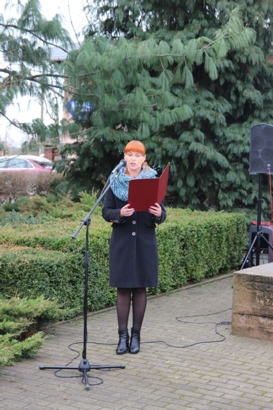 Po odegraniu i odśpiewaniu hymnu polskiego głos zabrała Edyta Podgórska Wiceburmistrz Płotów odczytując krótką historię z tamtych dni przytaczając wspomnienia naszego byłego już mieszkańca,żołnierza, który z Armią Polską im. Traugutta uczestniczył w tych działaniach.