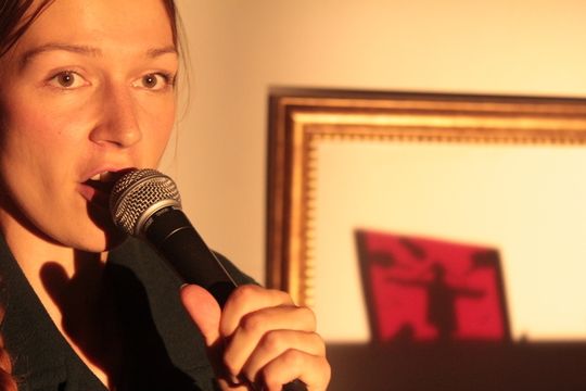Spotkanie podczas wernisażu malarki naiwnej Marii Wnęk staje się przyczynkiem do rozważań na temat relacji społecznych i postrzegania osób z marginesu. Aktorka przyjmuje rolę muzyka, który przy gramofonie poruszającym wielobarwny teatr cieni odgrywa szum galerii, rozmowy oglądających oraz kolejne obrazy autorki. Dzieła plastyczne zostają przełożone na utwory muzyczne, a Maria Wnęk przemawia ze swoich rewersów w niegramatycznych, dziecinnych monologach pisanych z potrzeby,