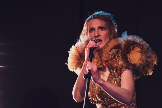 Nie bójmy się słowa recital, nie bójmy się słowa artystka. Wyśpiewa piosenki, przy których nasze mamy popłakiwały cicho w kuchni, waląc tłuczkiem w schabowego. Nawet w najbardziej niewygodnych butach, wystąpi tak, jakby się w nich urodziła. Jeszcze nie oswojona, a już zagrożona. Kobieta. Człowiek. Razem z jedynym perkusistą podłączonym do rytmu wszechświata, stworzą złocisty duet. Na ich niebie dwa słońca mogą płonąć jednocześnie.