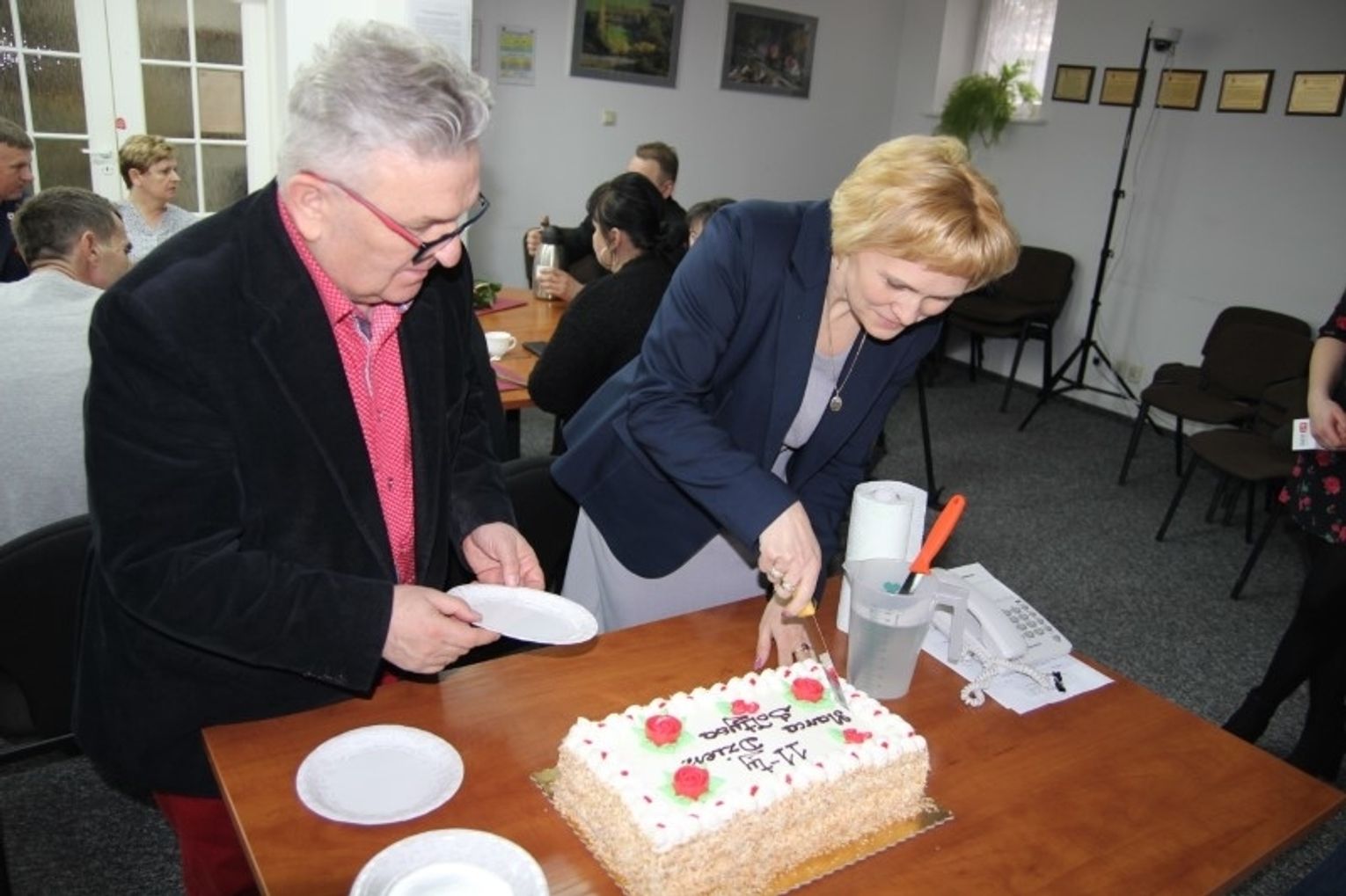 Władze samorządowe przygotowały Sołtysom słodki poczęstunek w postaci okolicznościowego tortu z zamieszczonymi życzeniami. (F.G,)