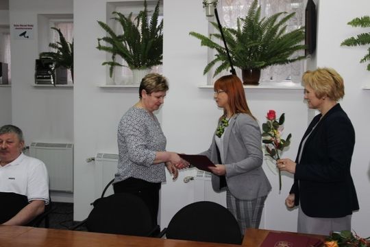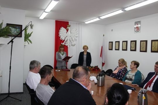 W imieniu władz samorządowych przybyłych gości serdecznie powitały: Edyta Podgórska Zastępca Burmistrza Płotów wraz z Elżbietą Ziółkowską Sekretarzem Gminy. Po powitaniu, Zastępca Burmistrza Edyta Podgórska, wręczyła sołtysom życzenia przygotowane przez Burmistrza Płotów Radosława Mackiewicza, który w tekście podkreśla bardzo dużą rolę jaką sprawuje Sołtys wraz z Radą Sołecką w swoim środowisku oraz wyraźnie zaznaczył wolę szerokiej współpracy pomiędzy organami gminy a Sołtysami.