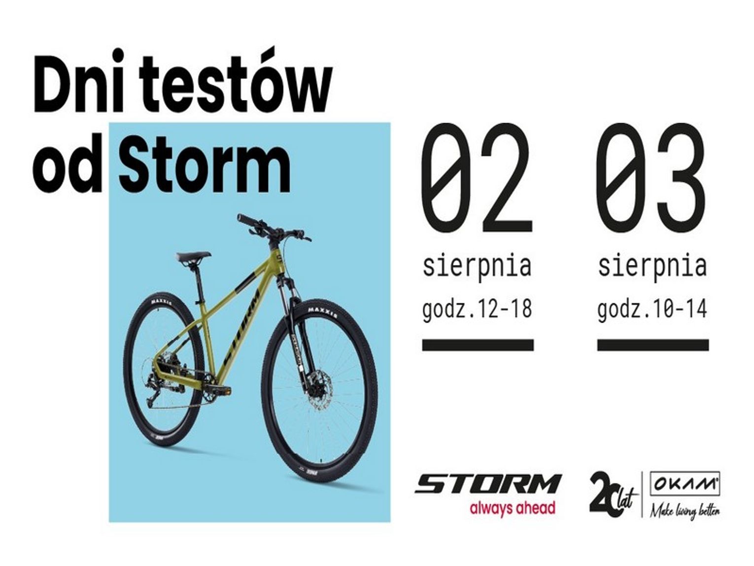 Podczas "Dni Testów rowerów STORM" uczestnicy będą mieli okazję przetestować różne modele rowerów marki w tym MTB, gravel, trekking i e-bike, a także junior. Dodatkową atrakcją będzie prezentacja jednośladu z kolekcji Trail, na którym przemieszczali się polscy piłkarze w trakcie zgrupowania na EURO 2024 w Hanowerze.