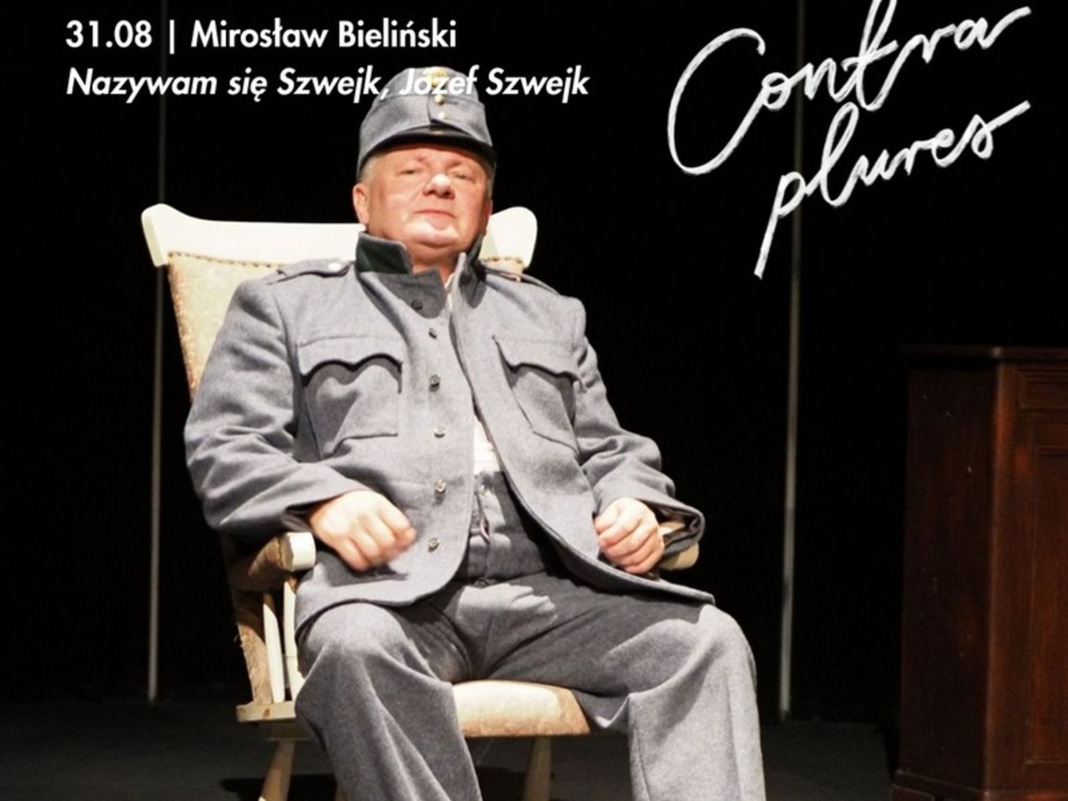 Przegląd polskiego monodramu Contra plures to inicjatywa Zamku, której celem jest zapoznanie widzów z bogatym dorobkiem polskiego monodramu. To forma teatralna, w której na scenie podziwiamy tylko jednego aktora. W najbliższą sobotę, 31 sierpnia, po raz pierwszy przed szczecińską publicznością wystąpi Mirosław Bieliński w spektaklu „Nazywam się Szwejk, Józef Szwejk”.