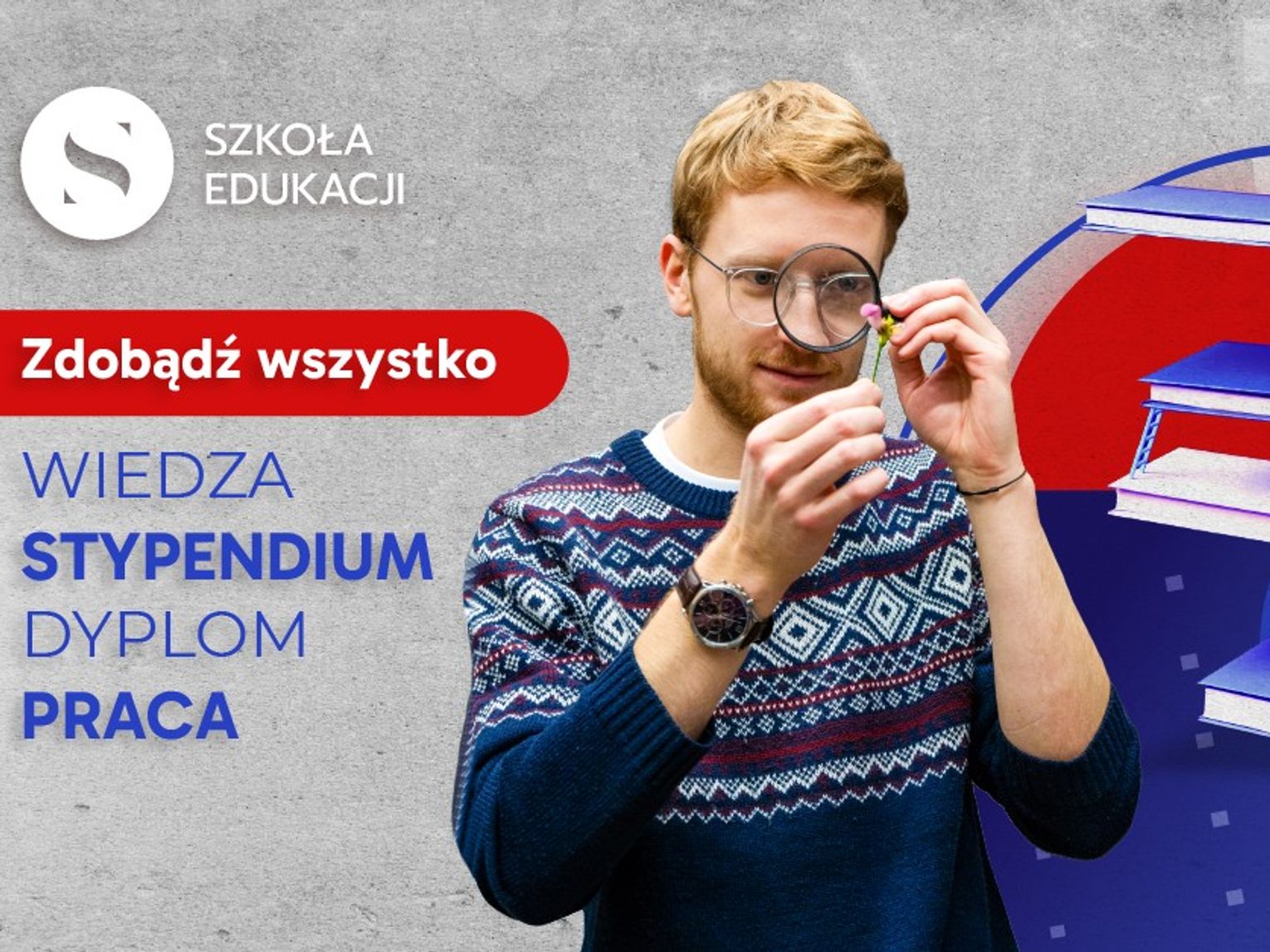 Jeśli chcesz zostać nauczycielem biologii, historii, języka polskiego lub matematyki i masz magisterium z jednego z powyższych lub pokrewnych kierunków, ale nie masz uprawnień nauczycielskich, rozpocznij bezpłatne studia podyplomowe w Szkole Edukacji. Po ich ukończeniu możesz uczyć zarówno w szkole podstawowej, jak i ponadpodstawowej. Oferujemy Ci także stypendium w wysokości 2500 zł/mc i darmowy akademik w Warszawie.